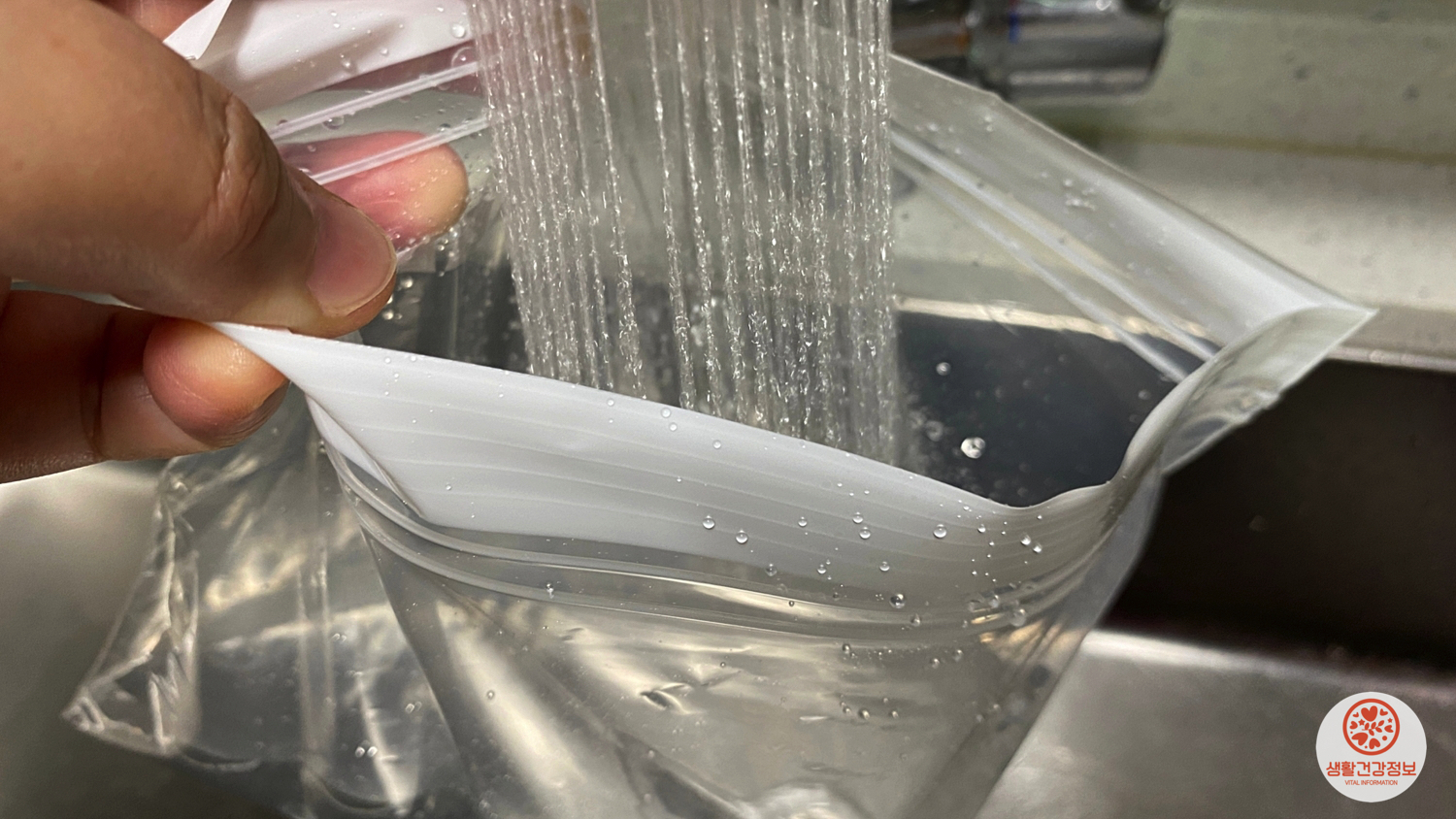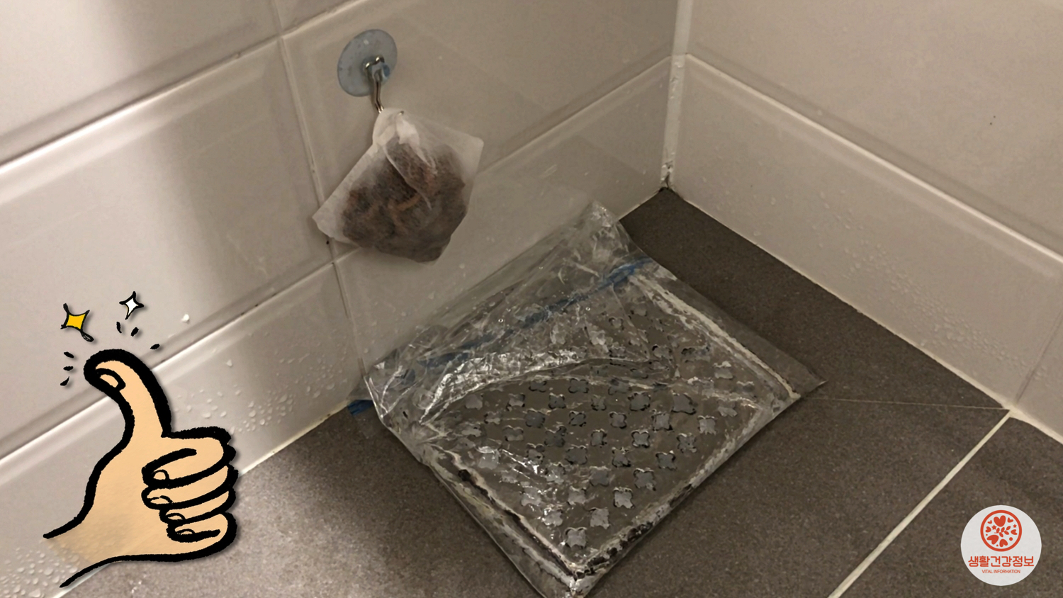 물을 채운 지퍼백을 배수구에 척 올리기만 하면