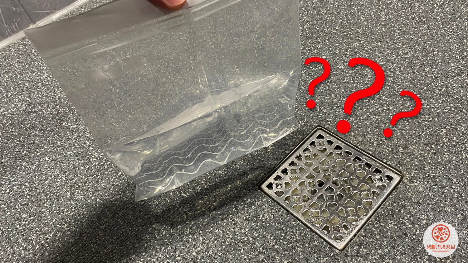 물을 채운 지퍼백을 배수구에 척 올리기만 하면