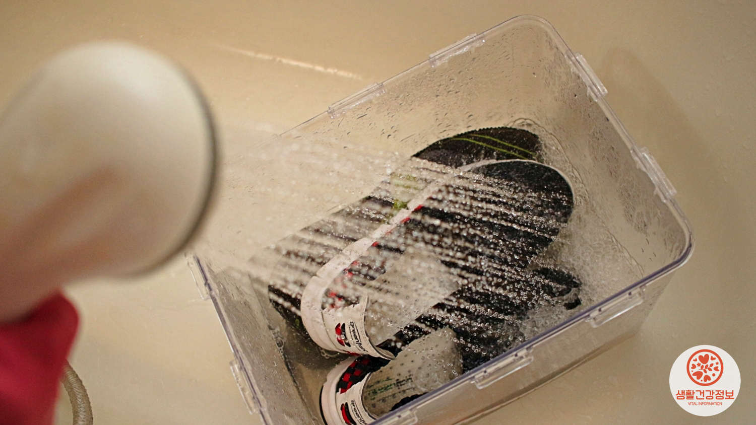 헹군 물이 깨끗해지면 운동화 빨래 끝!