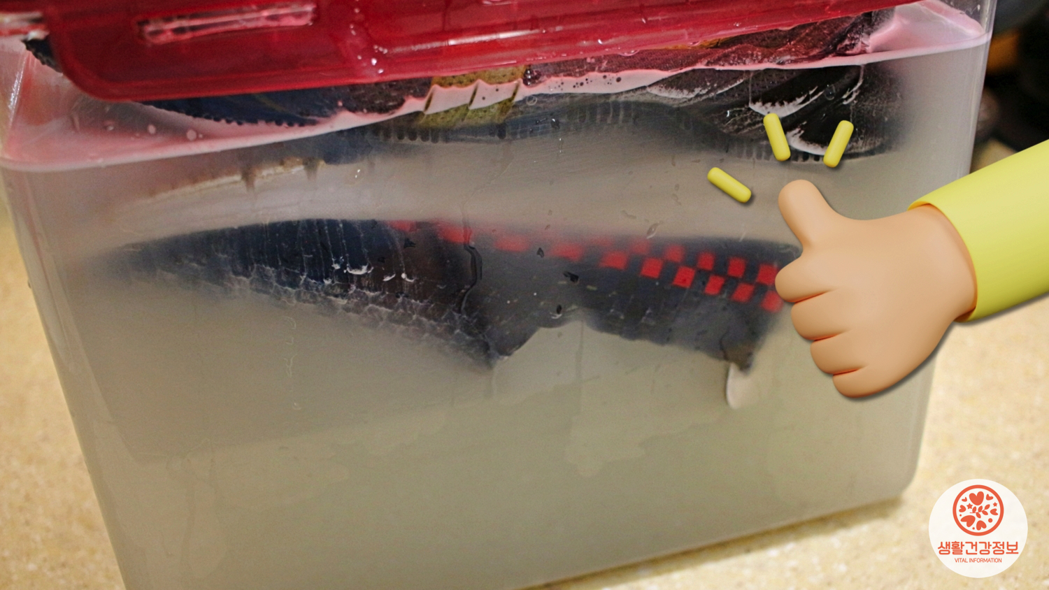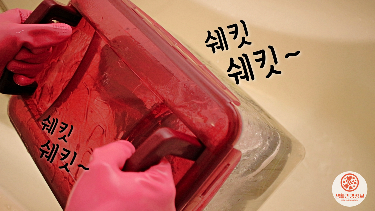 헹굴 때도 김치통을 활용하면 아주 쉬워요.