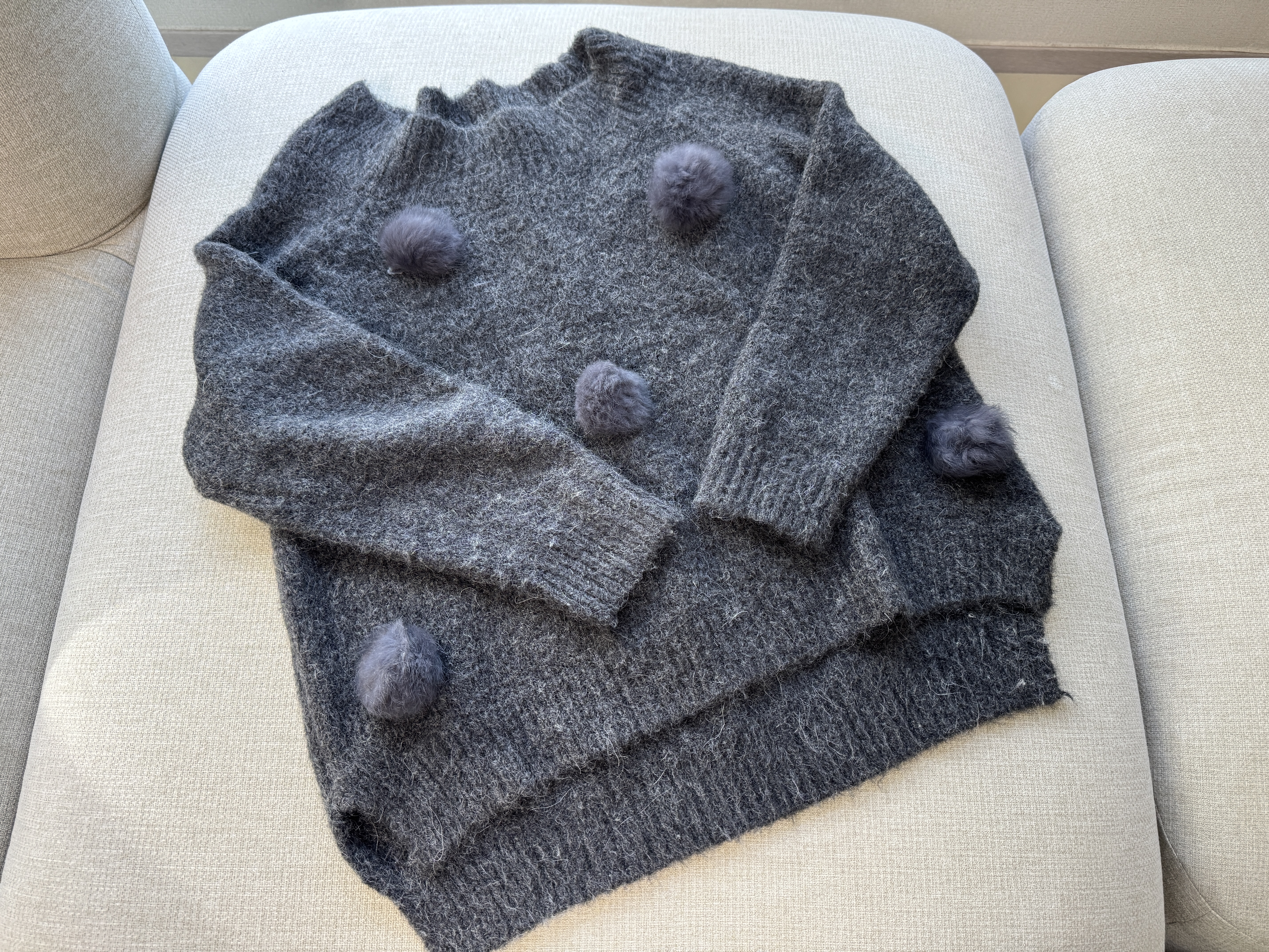 니트를 펼쳐놓고 전체적으로 문질문질~