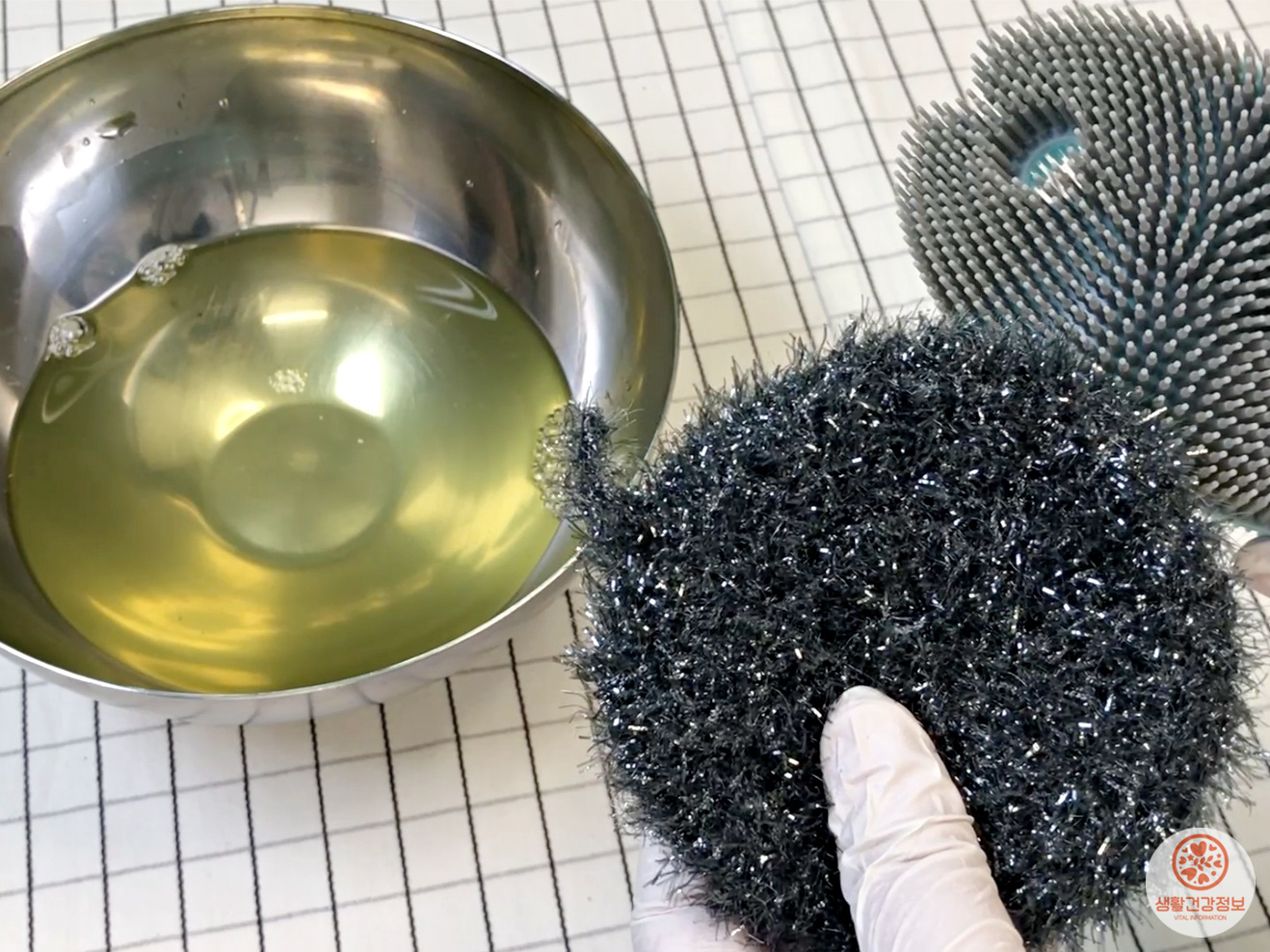 수세미를 10분동안 담가놓는 것 만으로도