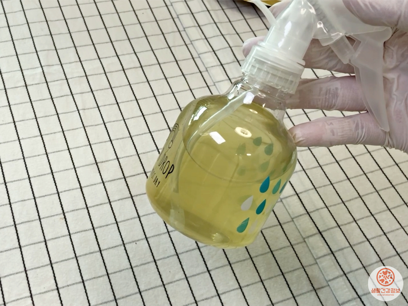 분무기에 시금치 데친물과 베이킹소다를 섞어서 담고