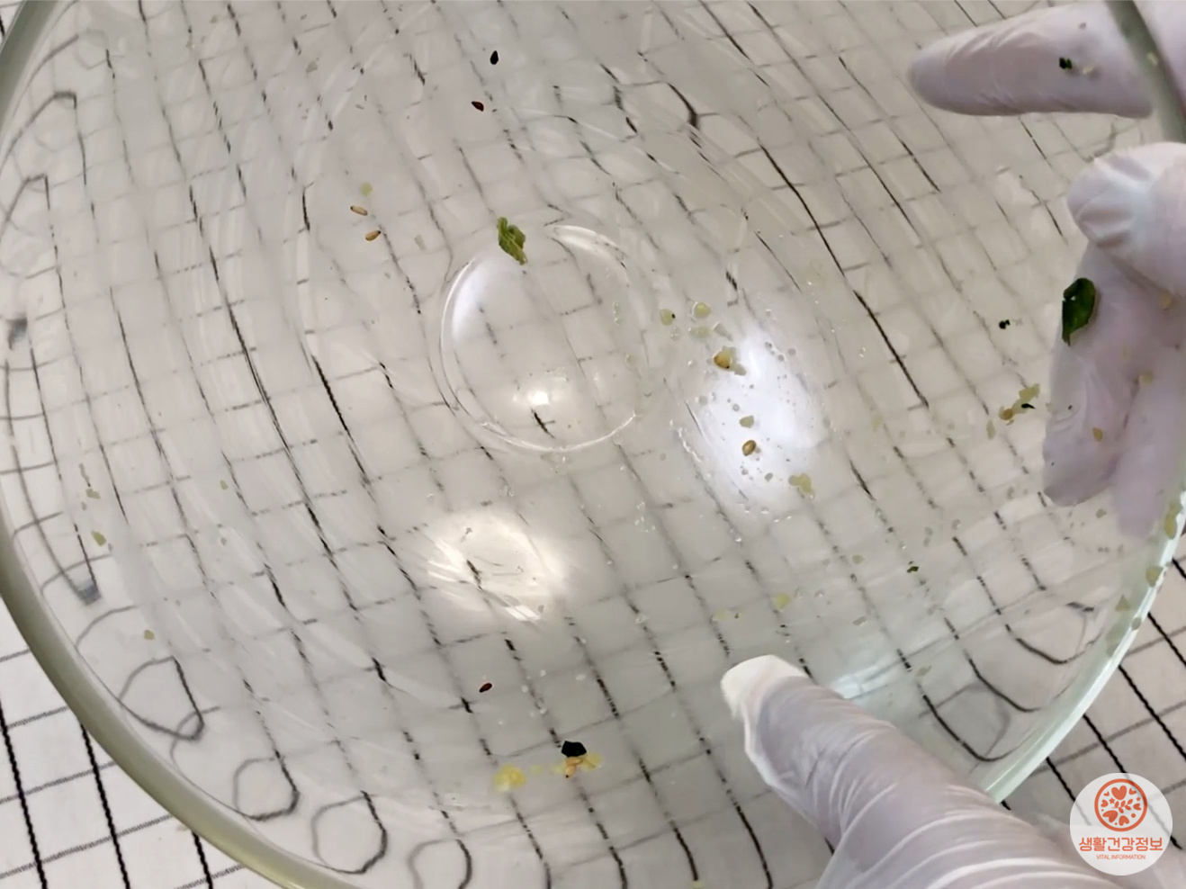 나물을 무치면 그릇에 기름 범벅이 되죠.