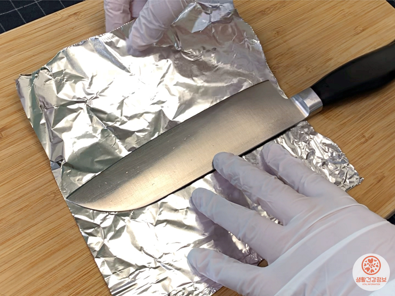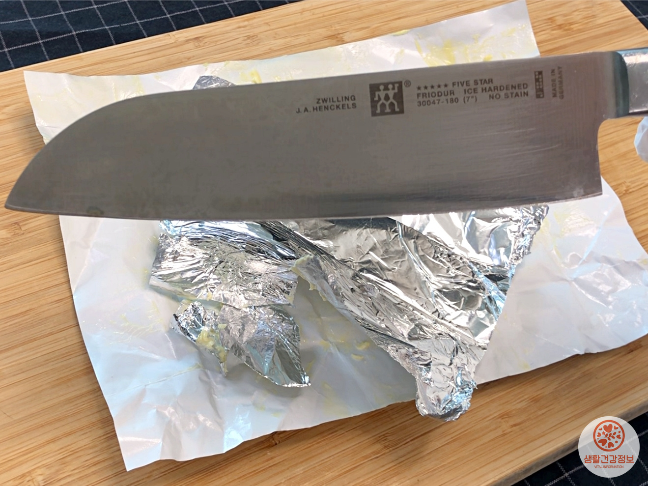 쿠킹호일 속 칼에는 기름이 하나도 묻지 않았고요.
