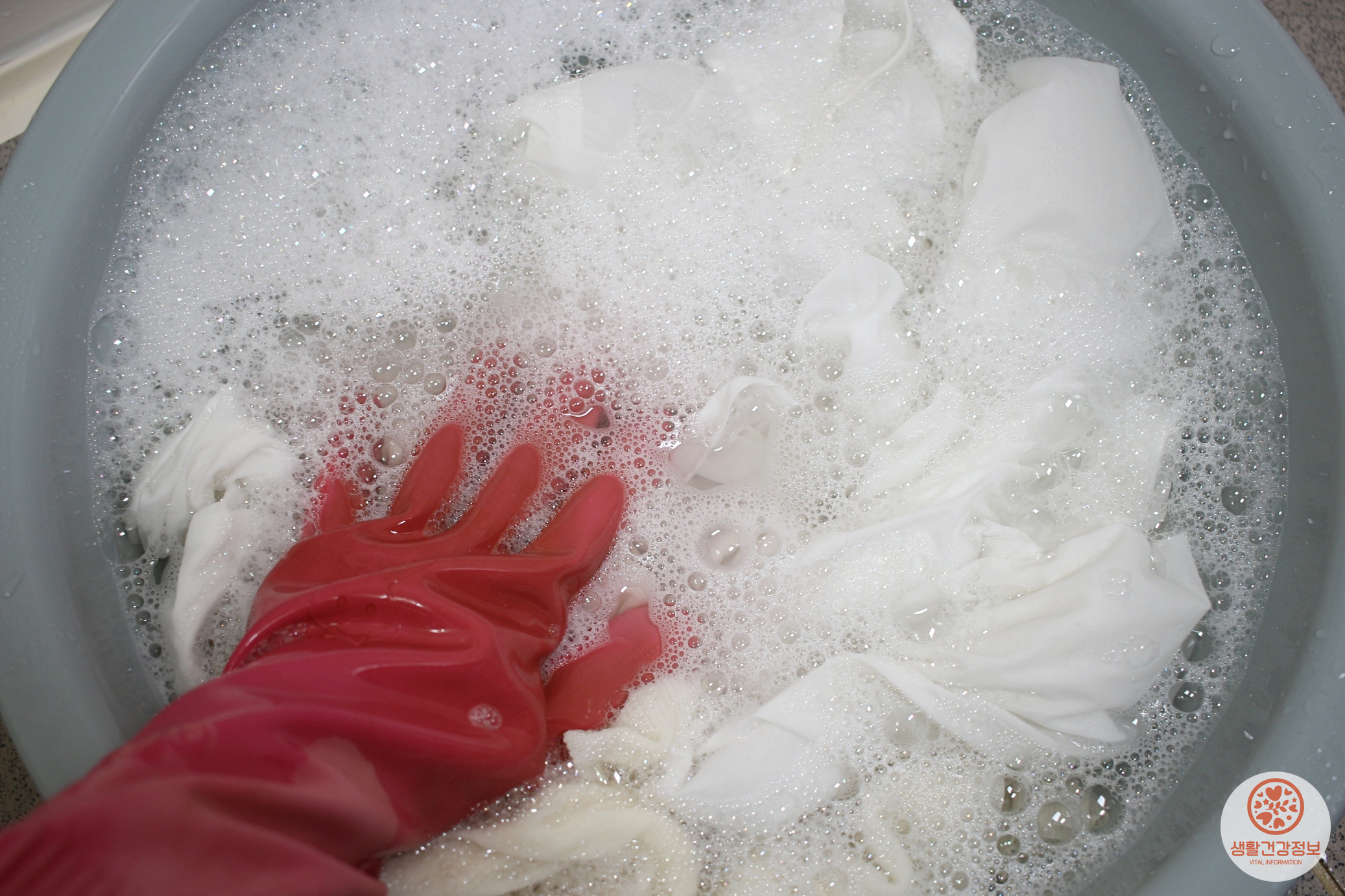 대야에 변색된 옷을 담고