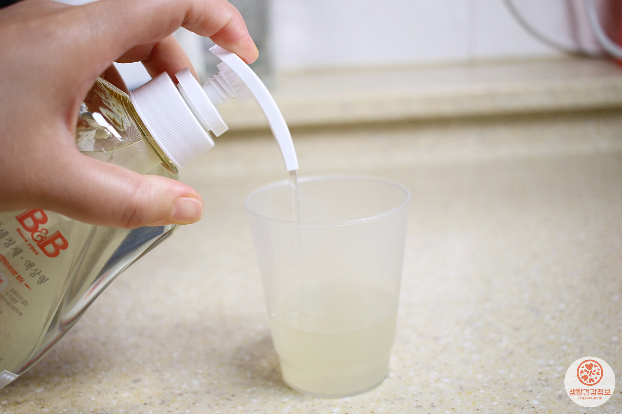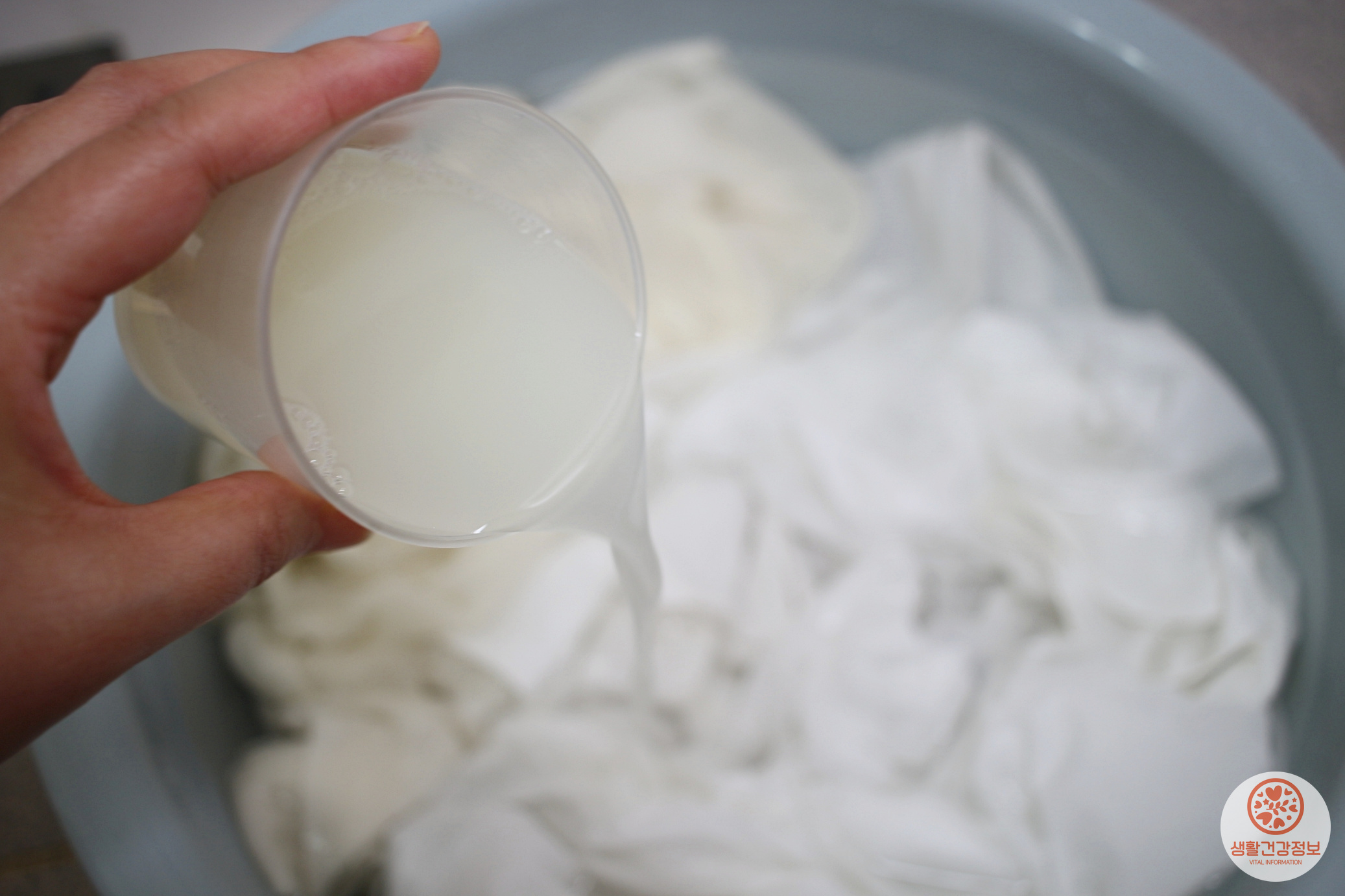 섞어놓은 비법세제 적당량 넣어서