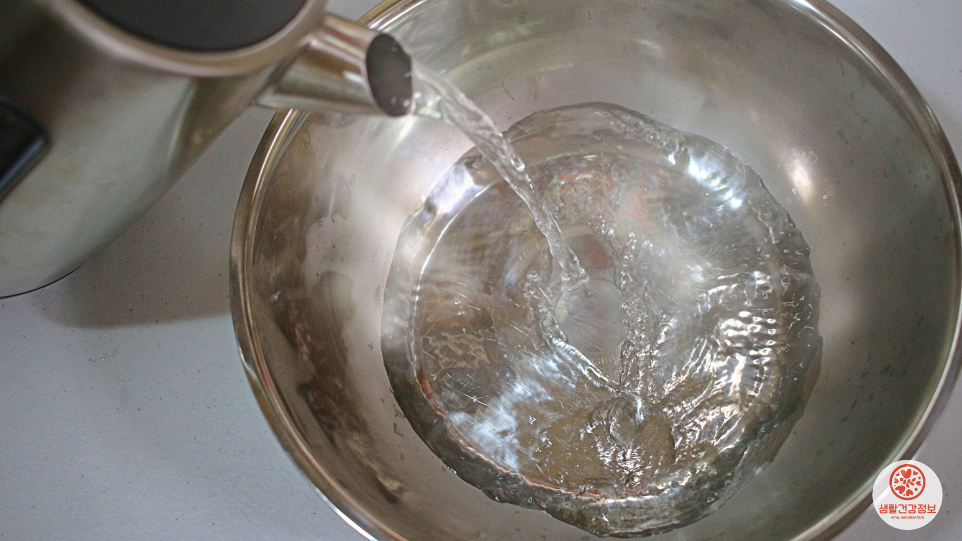 뜨거운 물에 통째로 담가놓기만 하면 되고요.