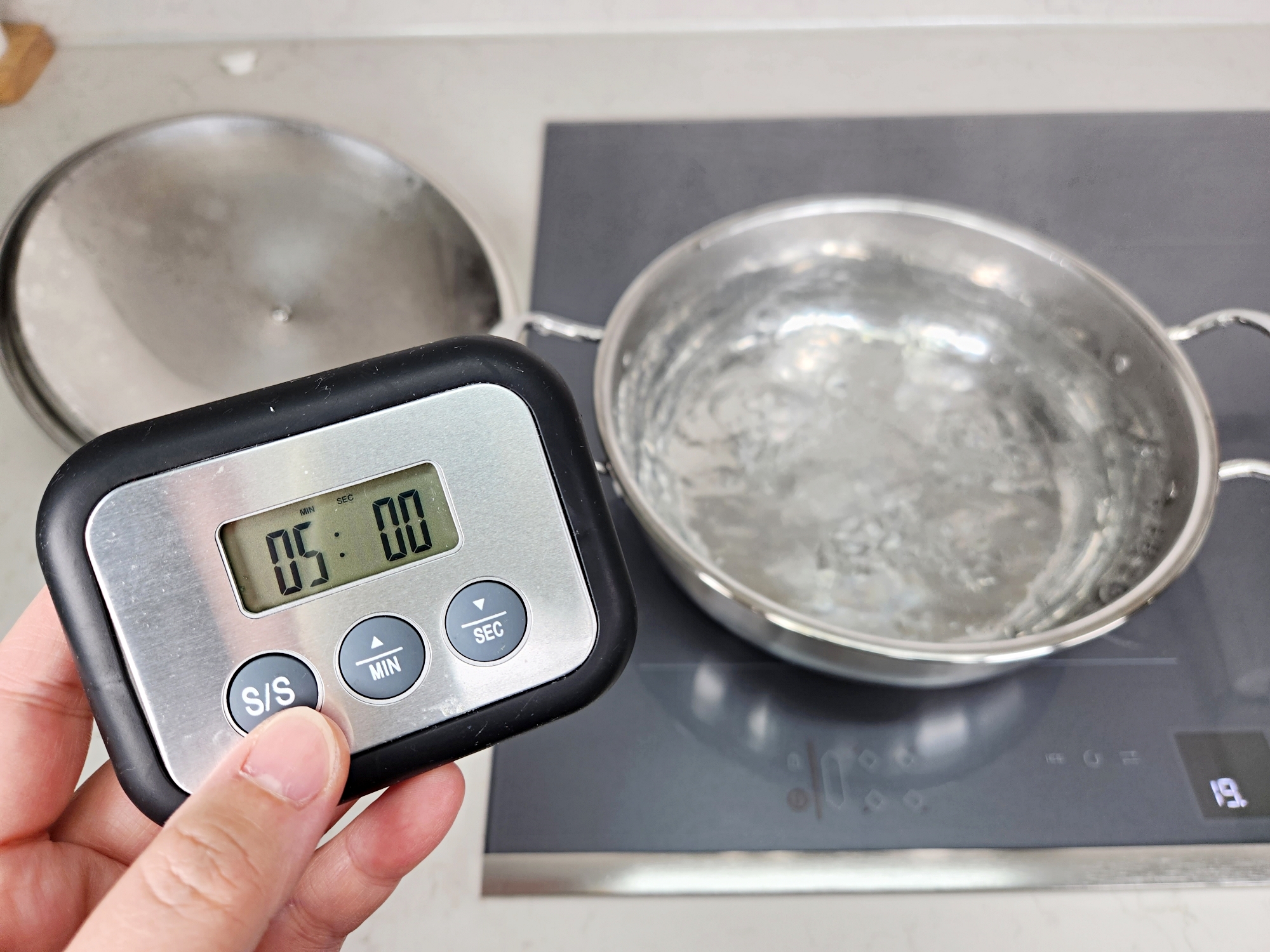 수돗물이 끓은 뒤 뚜껑을 열고 5분 정도 더 끓여주면