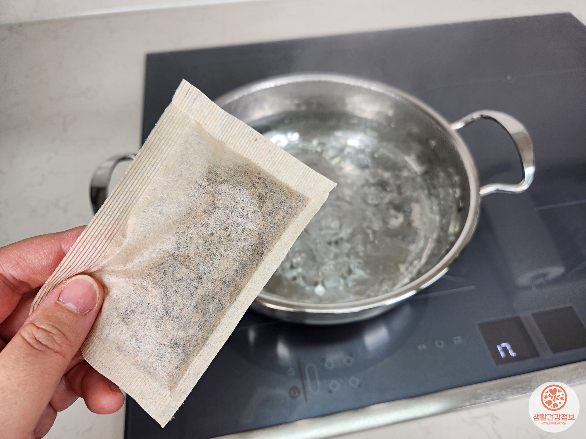 뜸 들이기가 끝나면 티백은 바로 건져주세요.