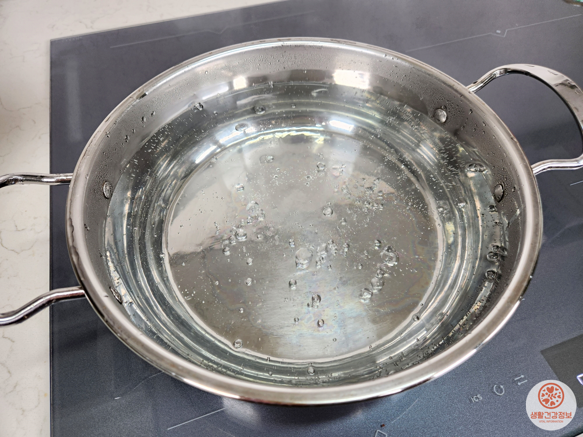 수돗물이 끓기 시작한 뒤 뚜껑을 열고 5분간 끓이면