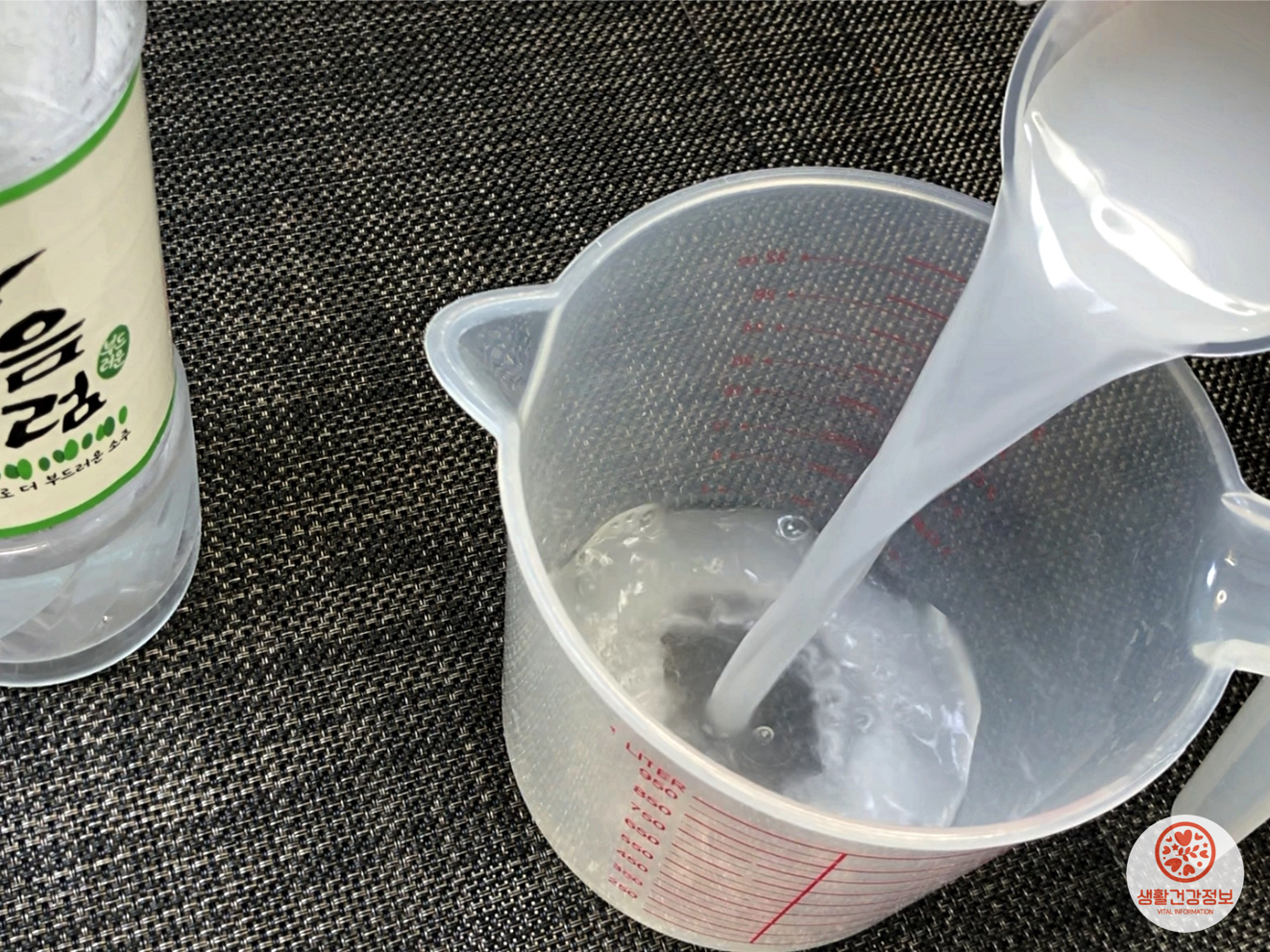쌀뜨물과 소주를 1:1로 섞어주시고요.