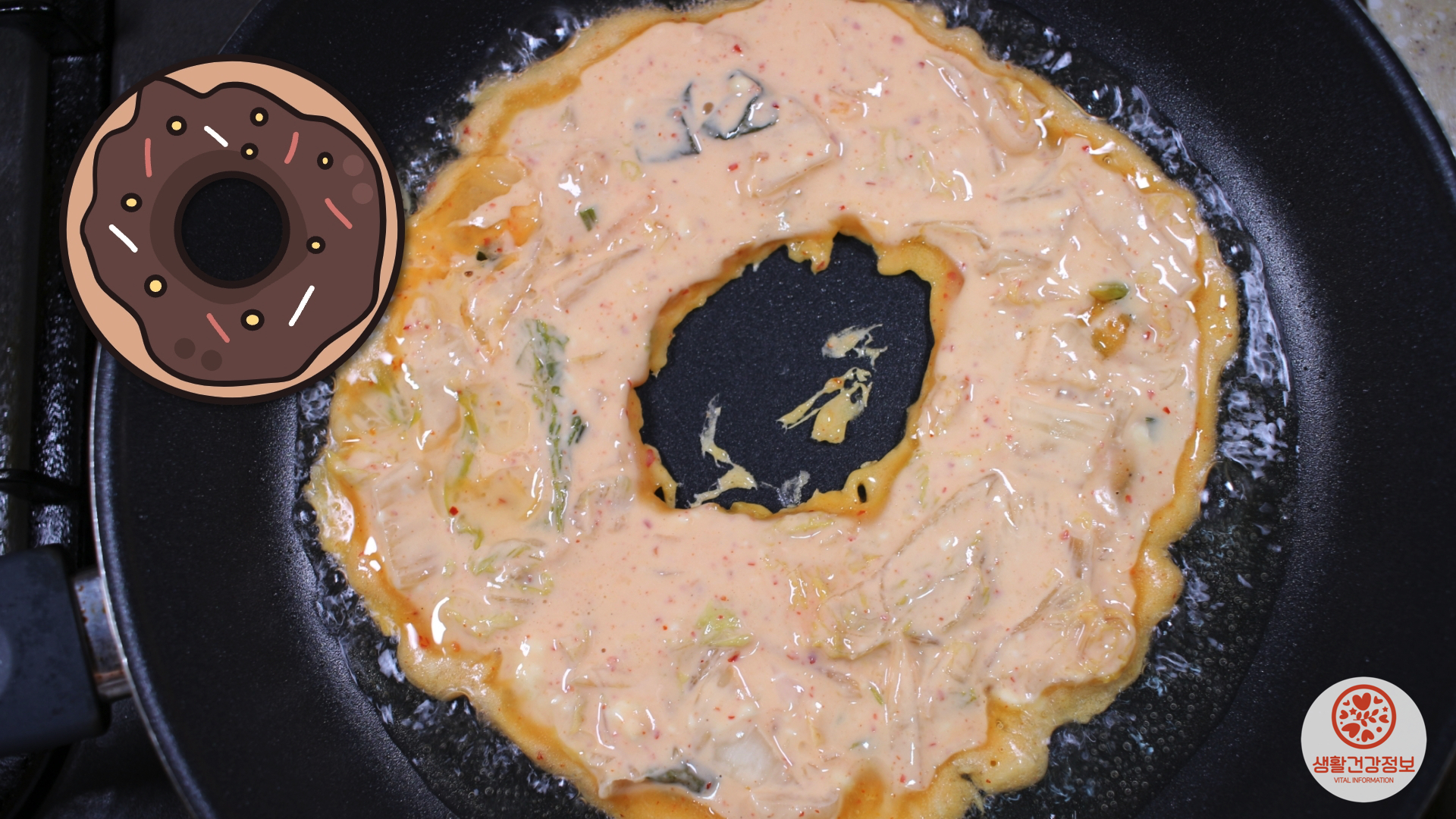 동그라미 말고 도넛모양으로 부쳐야 해요.