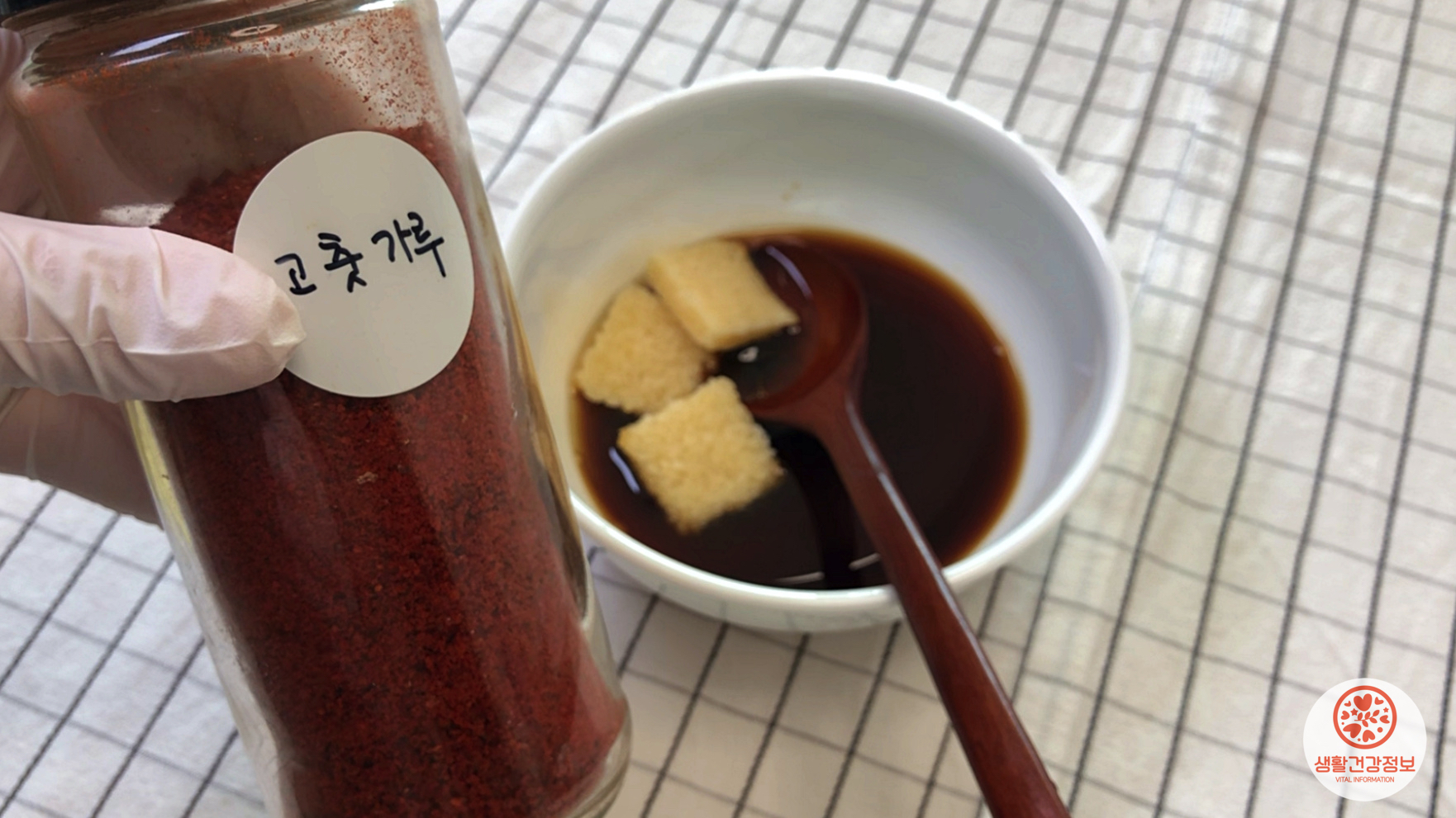 들기름, 다진마늘, 고춧가루.