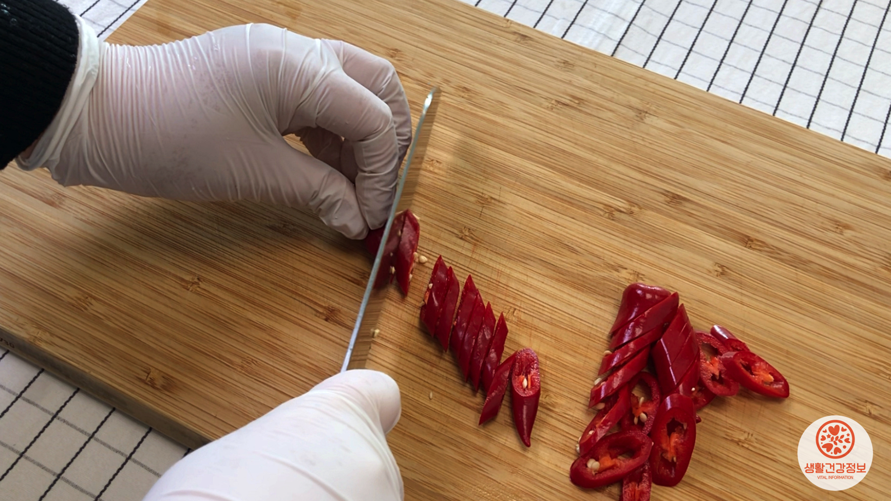 마지막으로 홍고추는 어슷썰기 해주세요.