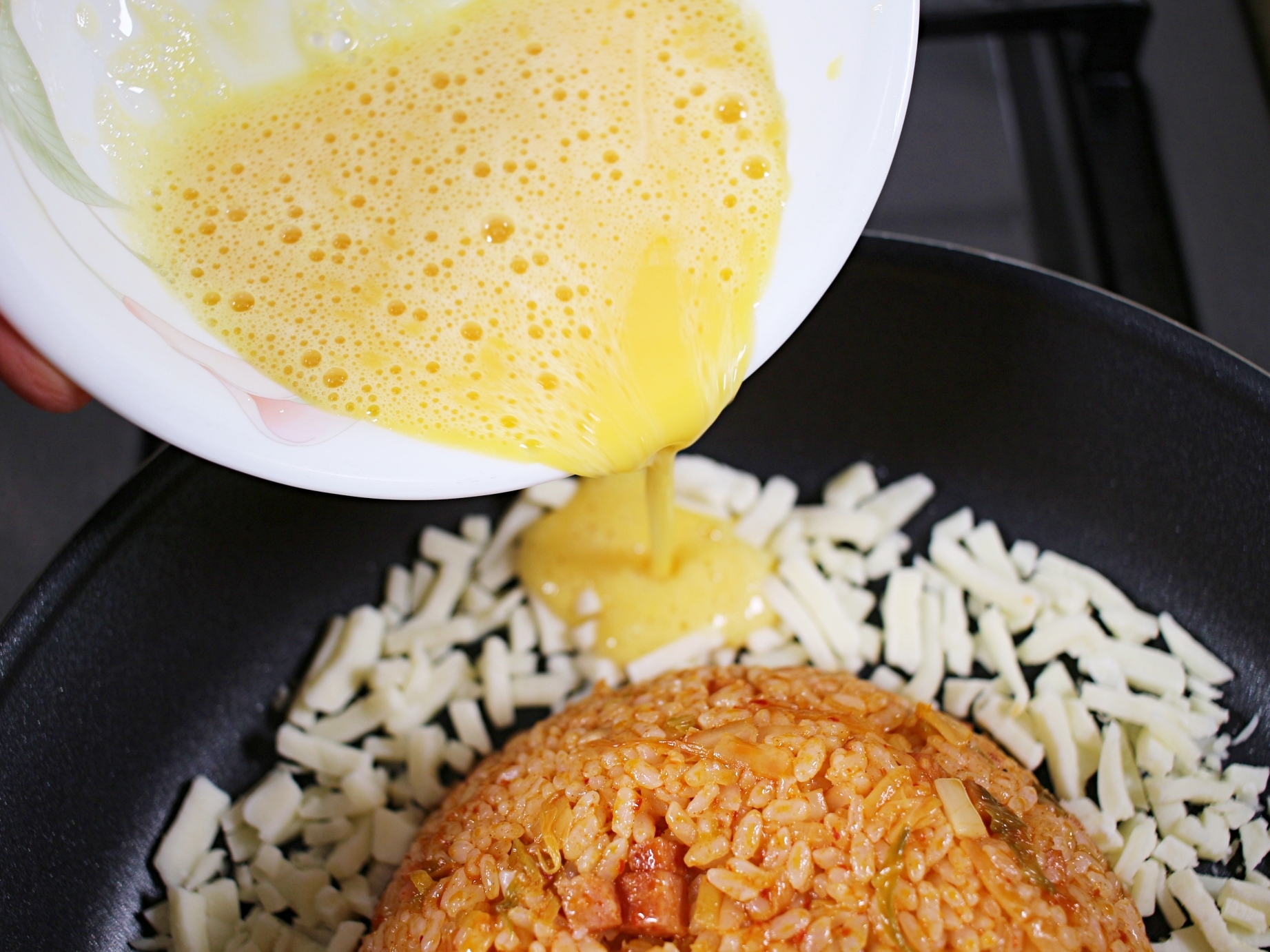 준비한 계란물을 부어주세요.