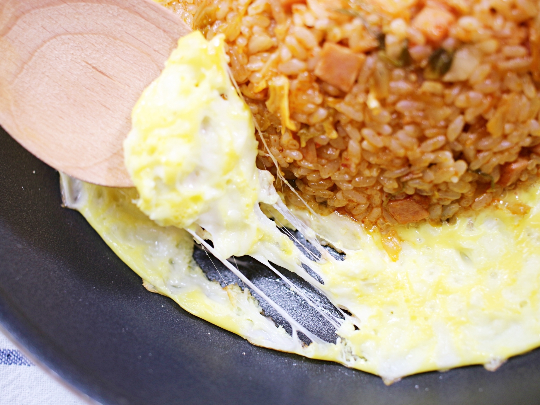 노릇하게 익은 계란, 늘어나는 치즈,