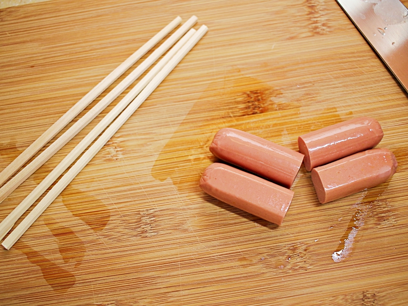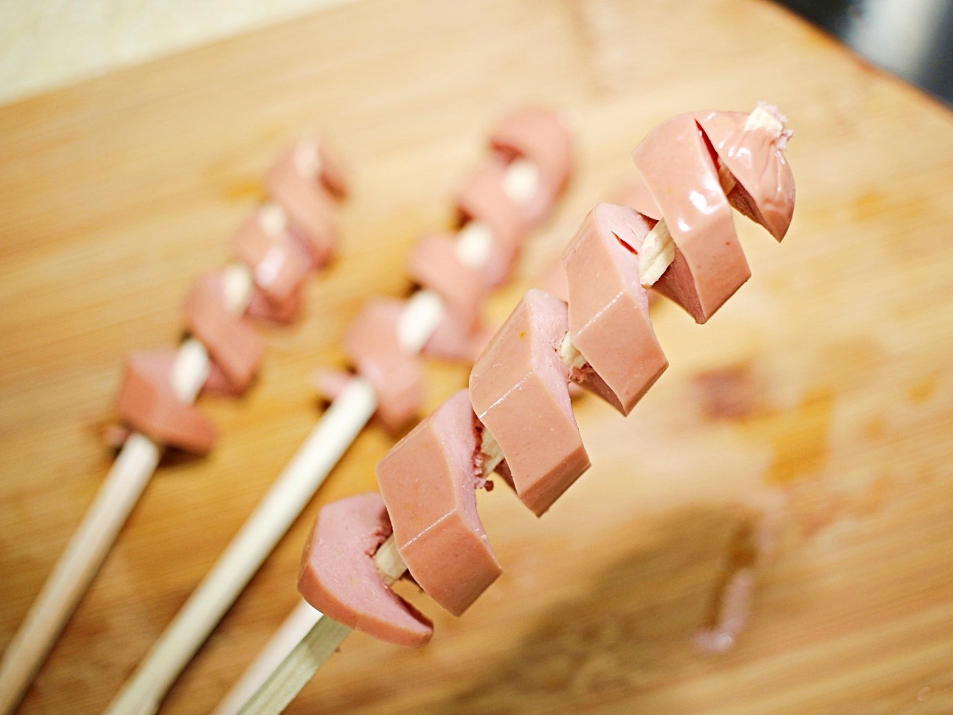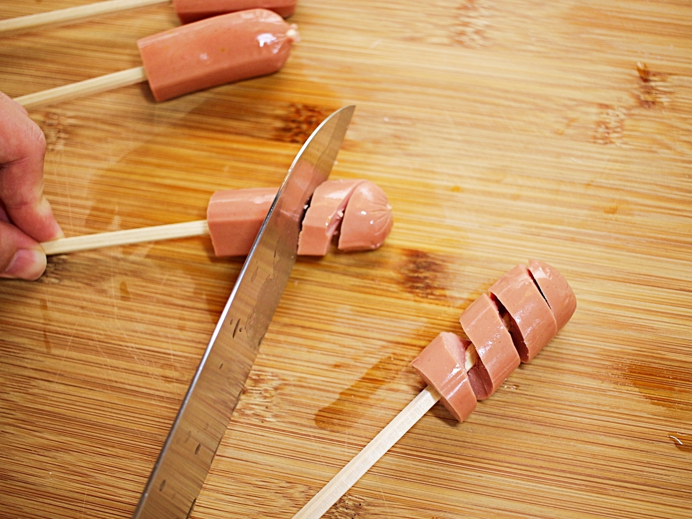 소시지에 칼집을 넣어서 회오리모양을 만드는게 포인트예요.
