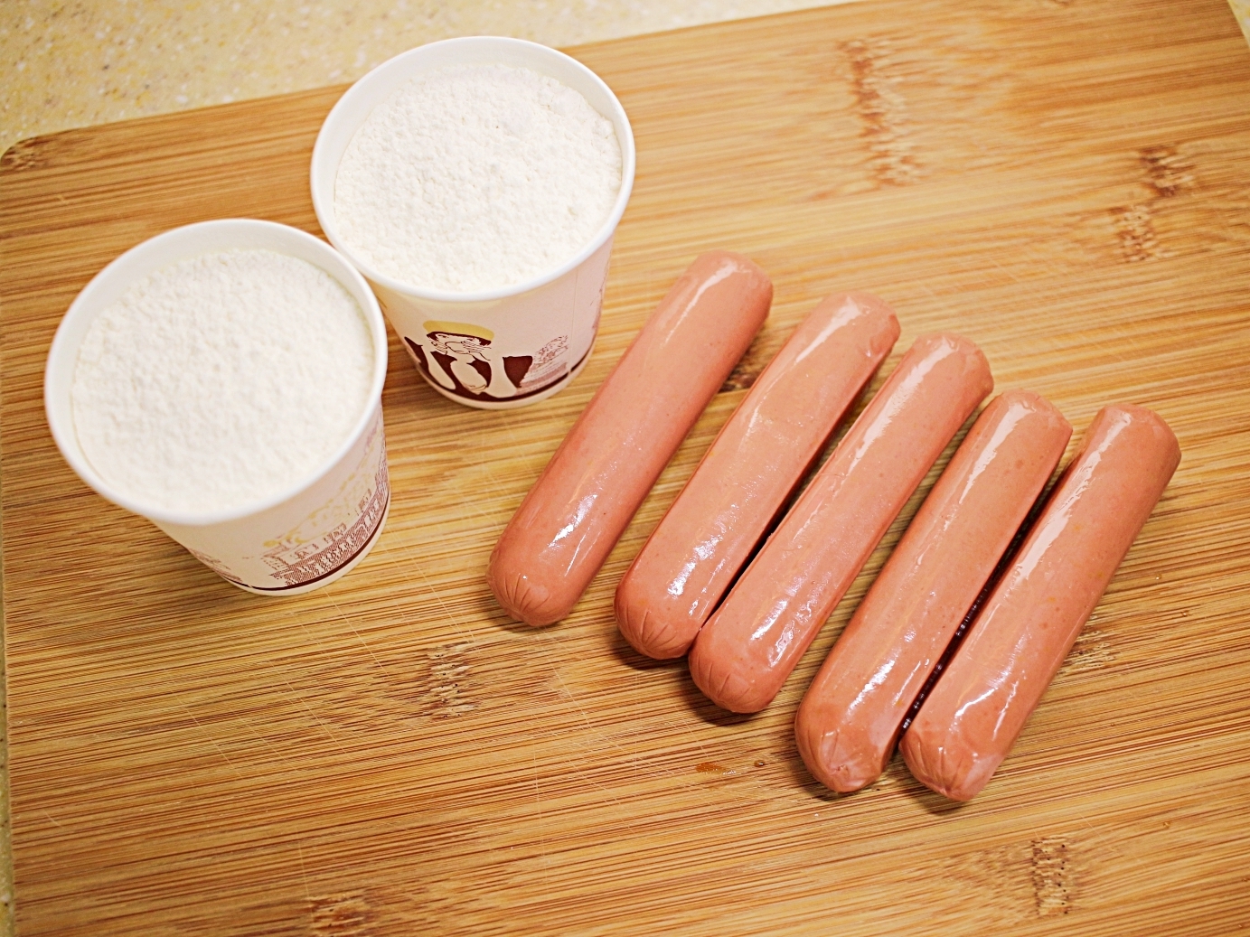 재료는 소시지와 핫케이크가루 딱 두가지~