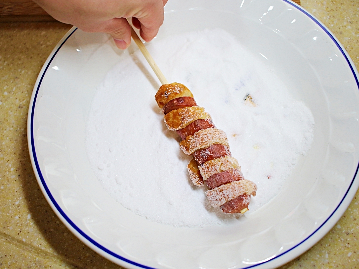 한눈에 봐도 먹음직스러운 회오리핫도그가 될 수 있어요.