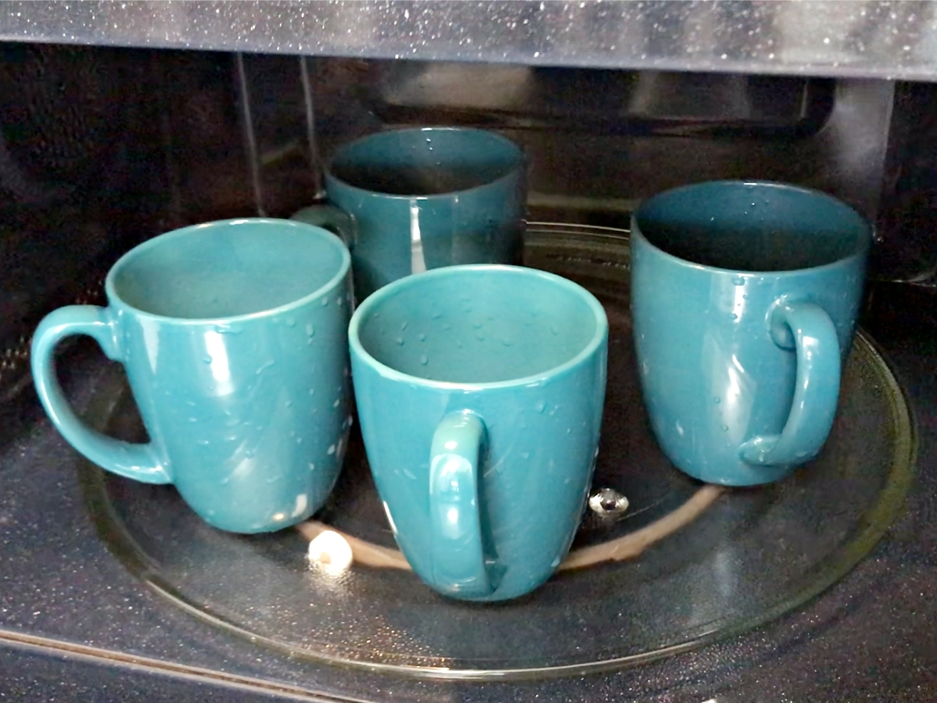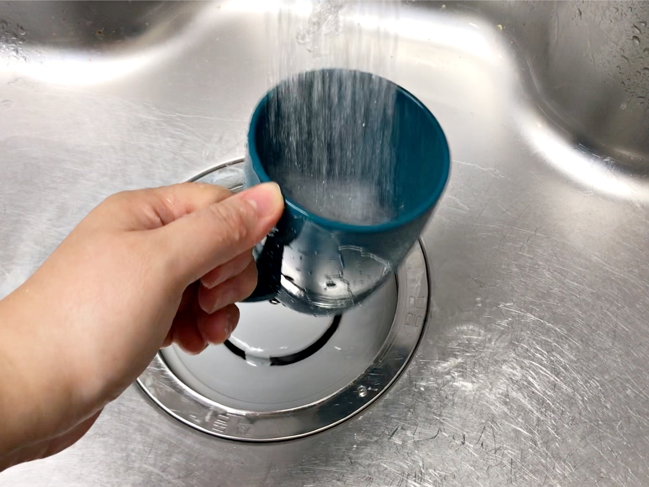 컵에 물을 약간만 채워서 1분만 돌려주시면 돼요.