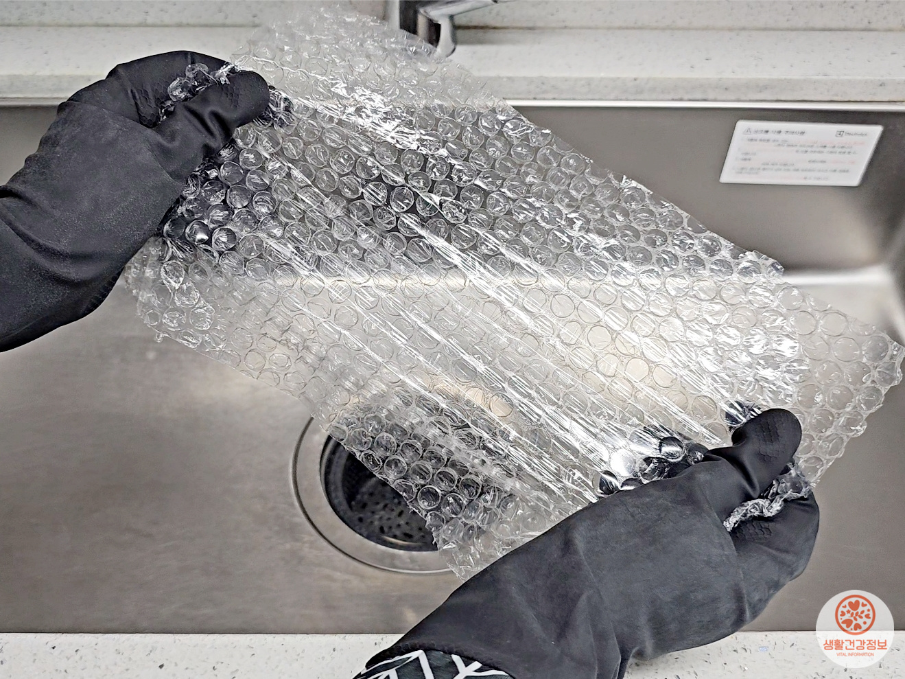 뽁뽁이를 싱크대에 두기만 하면 결과는 놀라움 그 자체!