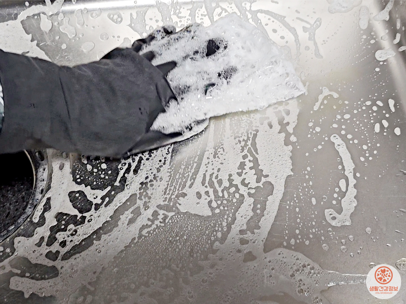 싱크대를 빡빡 문질러서 닦아도 흠집 날 걱정이 없어요.