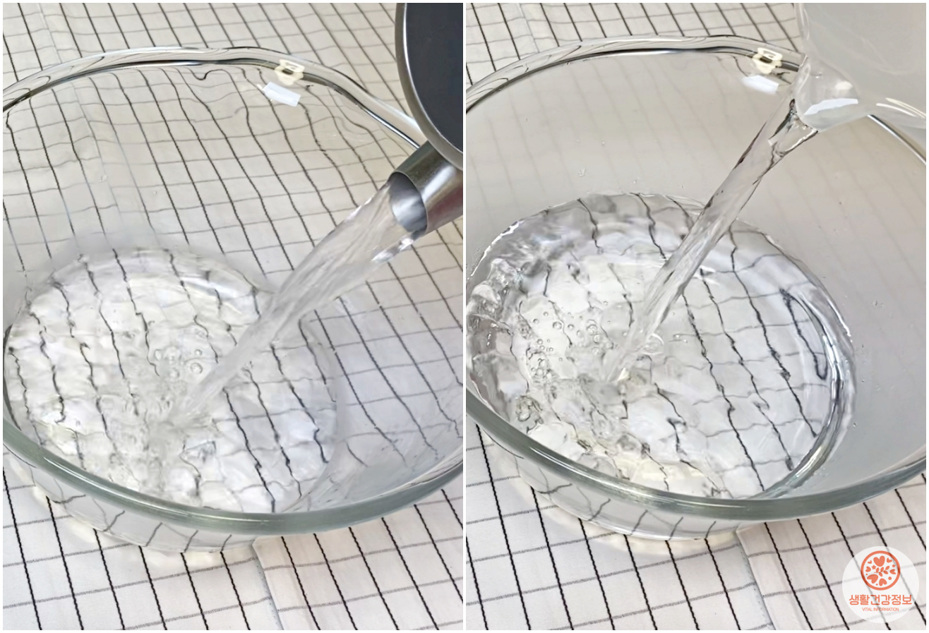 물에서 꺼낸 뒤 찬물이나 얼음물로 헹구면