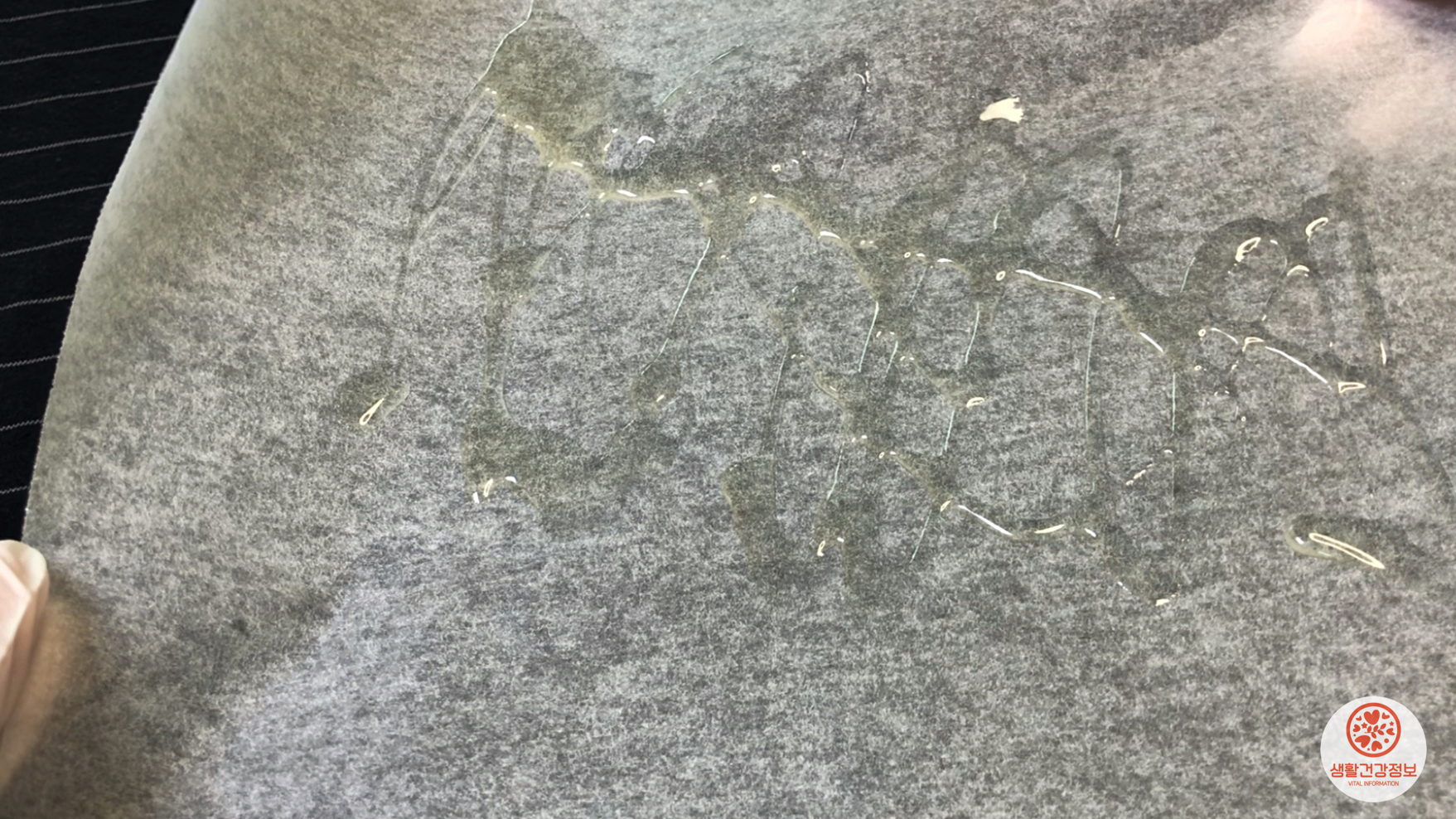 그다음 종이호일에 기름을 약간 둘렀어요.