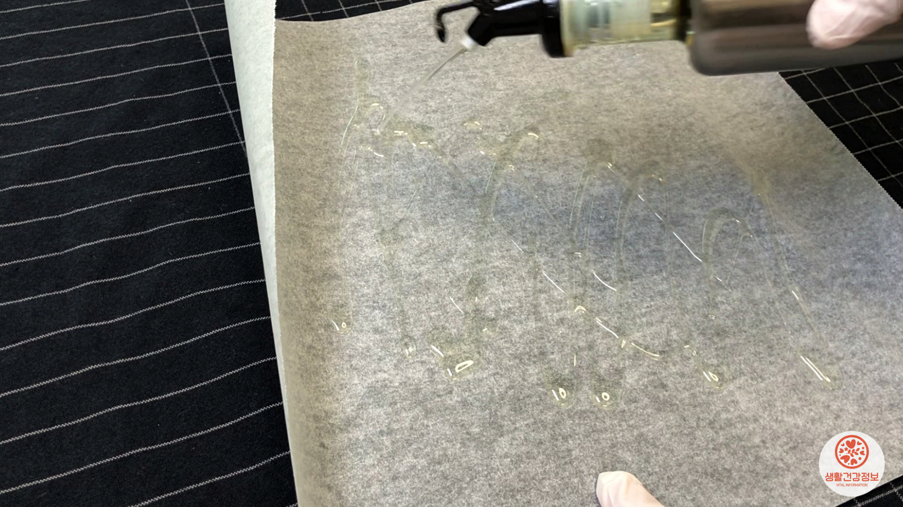 그다음 종이호일에 기름을 약간 둘렀어요.