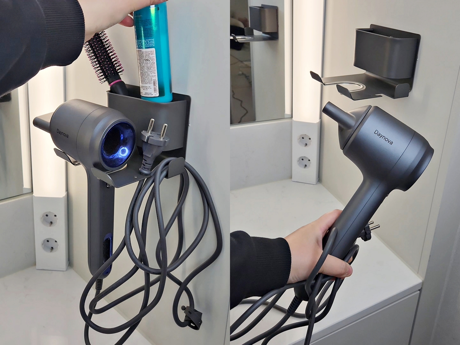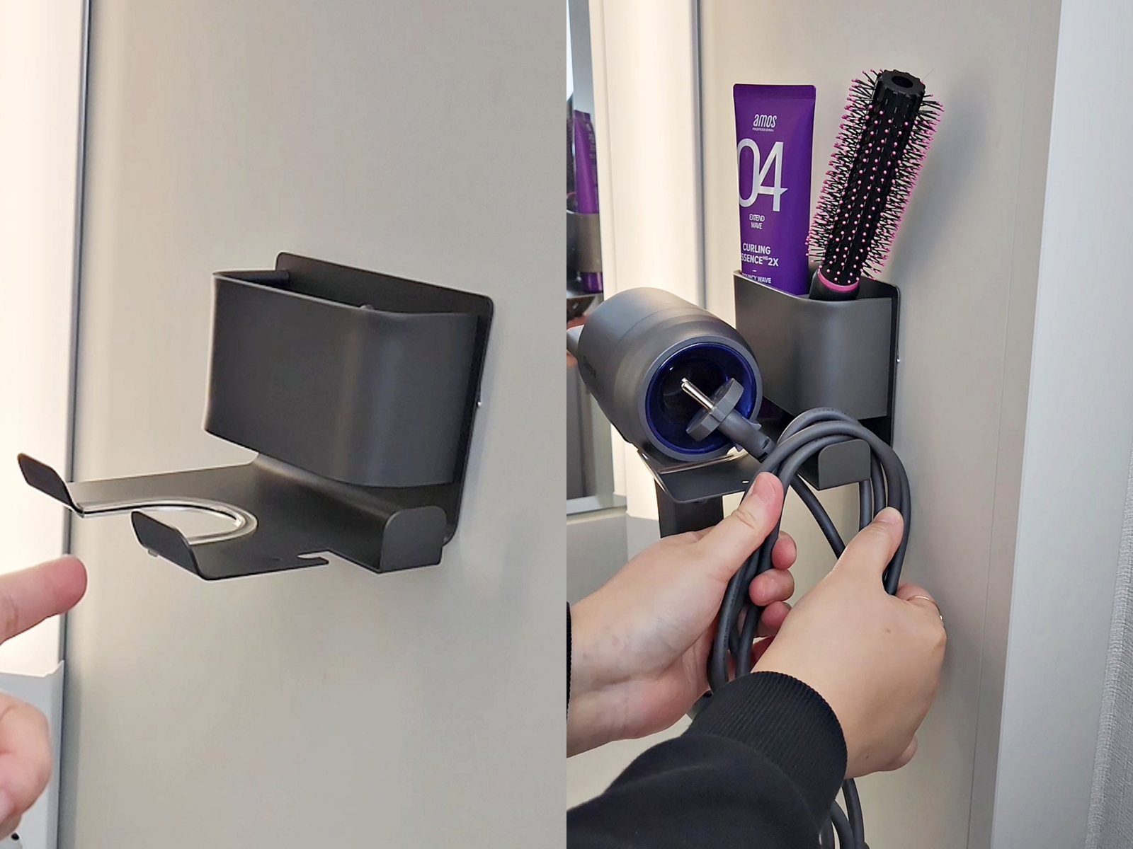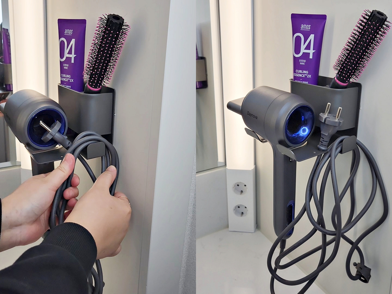 드라이기 착 걸어두고 전선까지 깔끔하게 정리 끝!