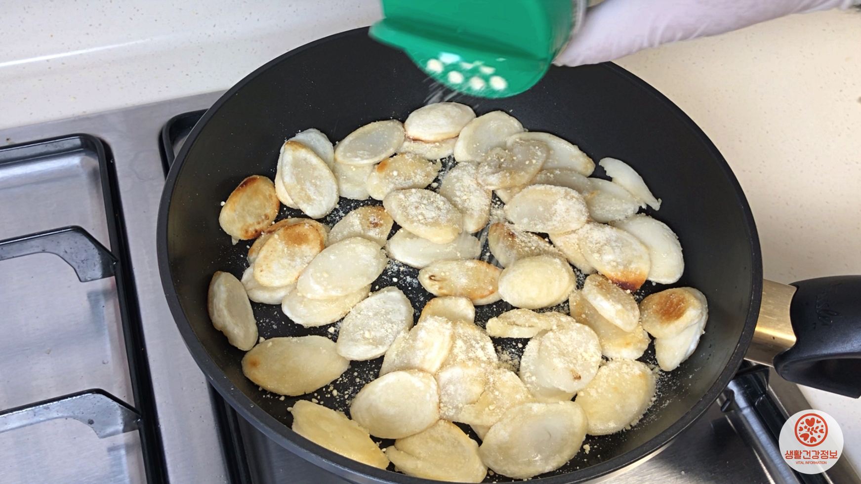 참기름 2큰술을 넣고 뒤집어가며 구워주세요.