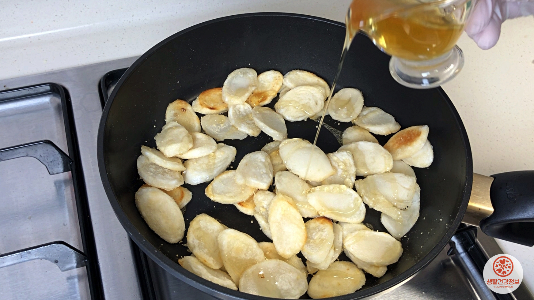 참기름 2큰술을 넣고 뒤집어가며 구워주세요.