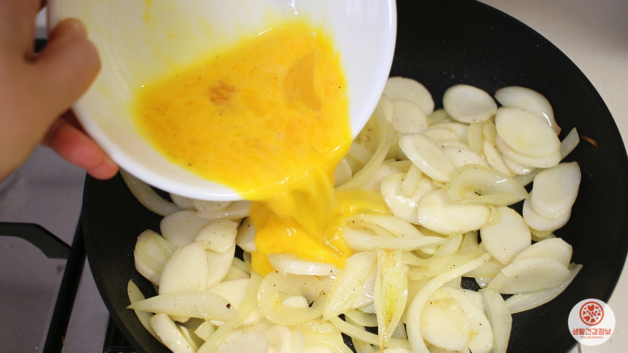 소금, 후추로 간을 맞춘 계란물을 부어서