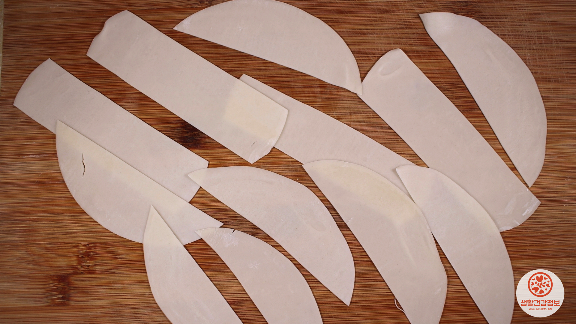 만두피는 먹기 좋은 크기로 잘라주세요.