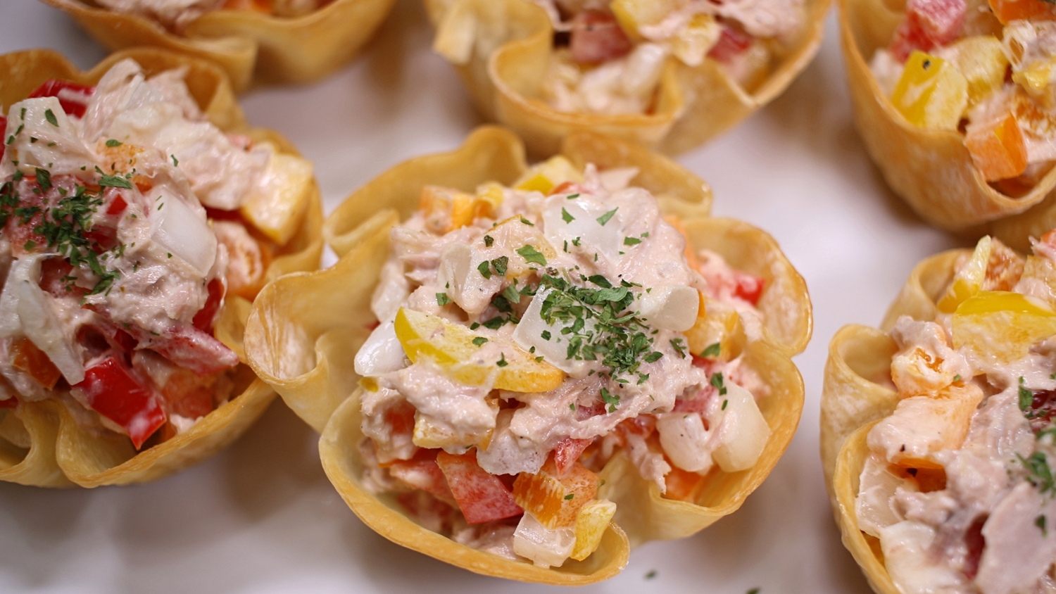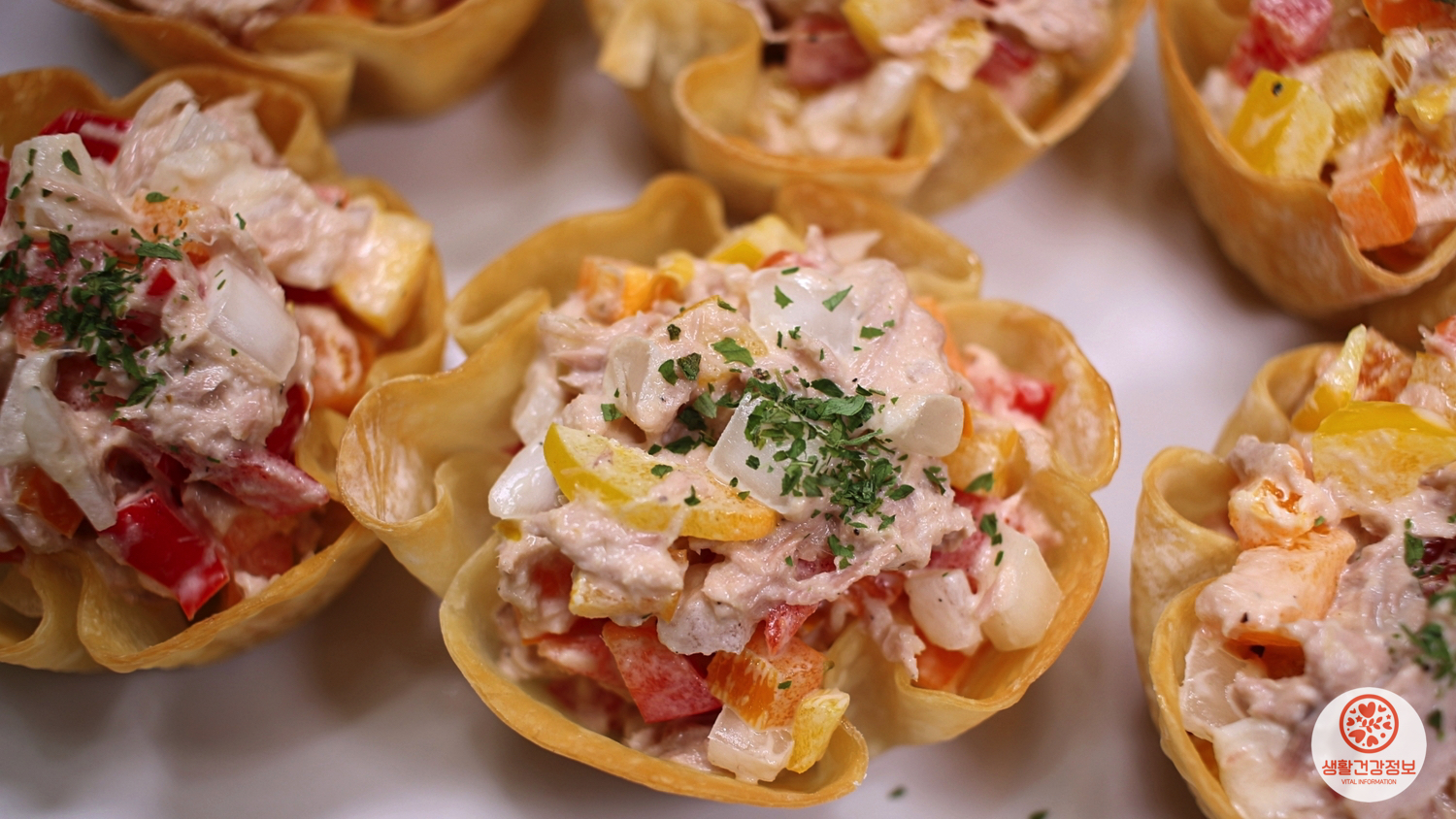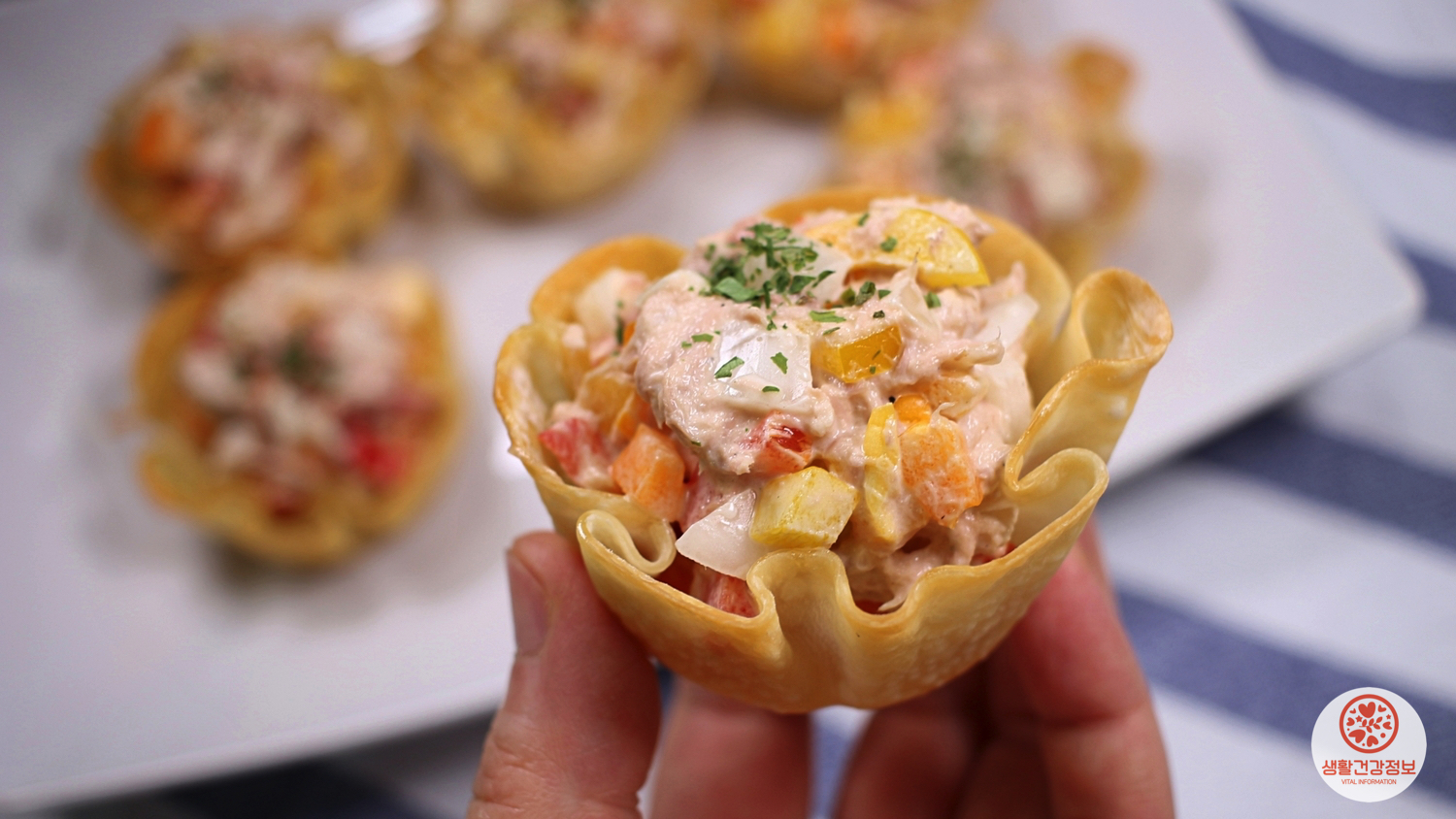만두피컵 속에 샐러드를 담았을 뿐인데