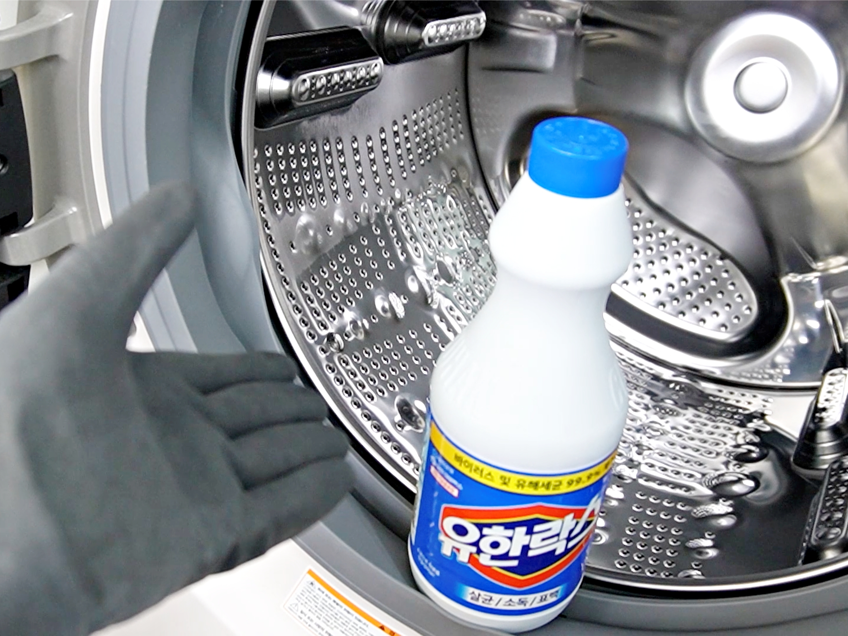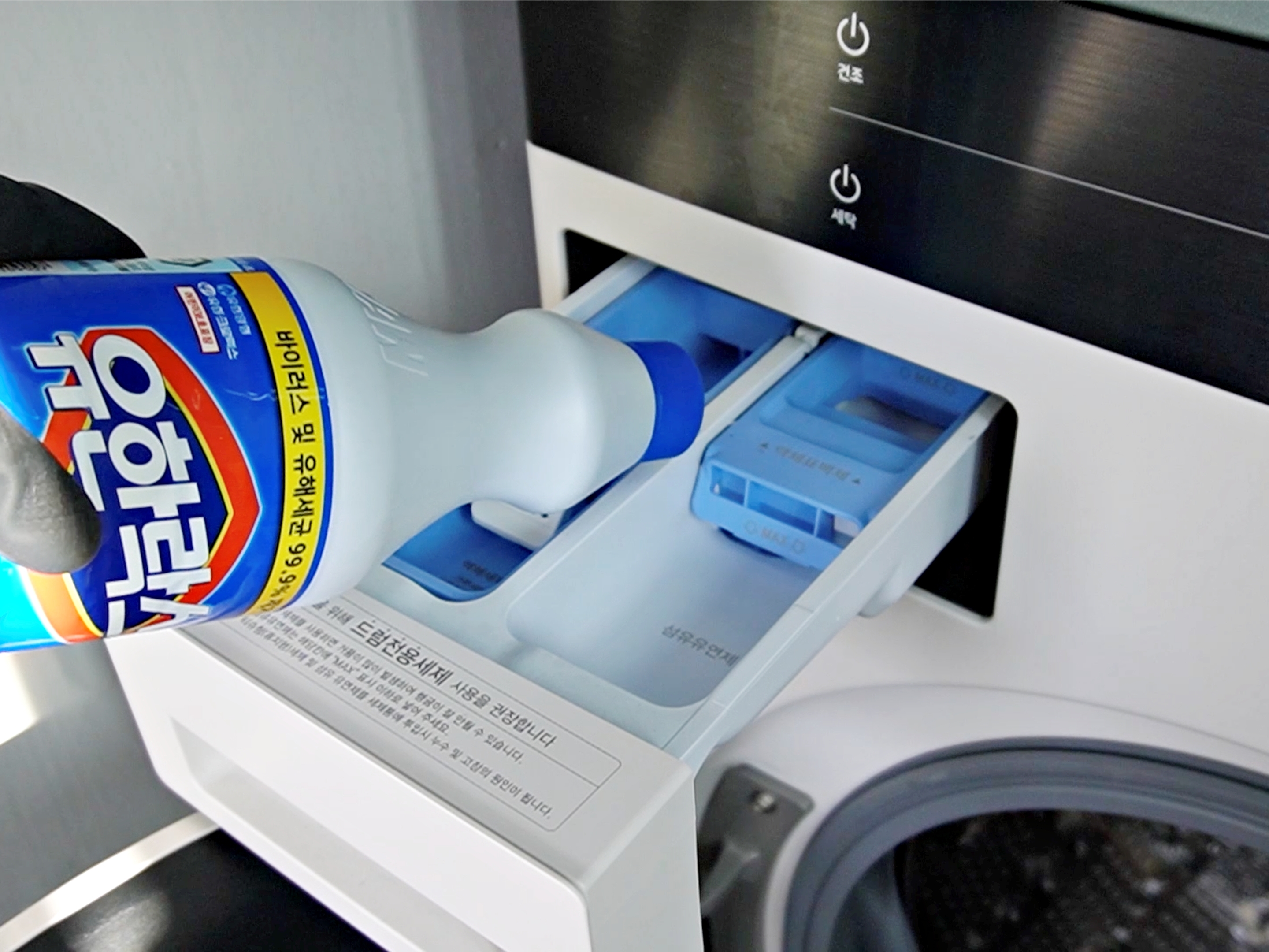 세제통이 아니라 세탁조 안에 직접 락스를 부어주세요.