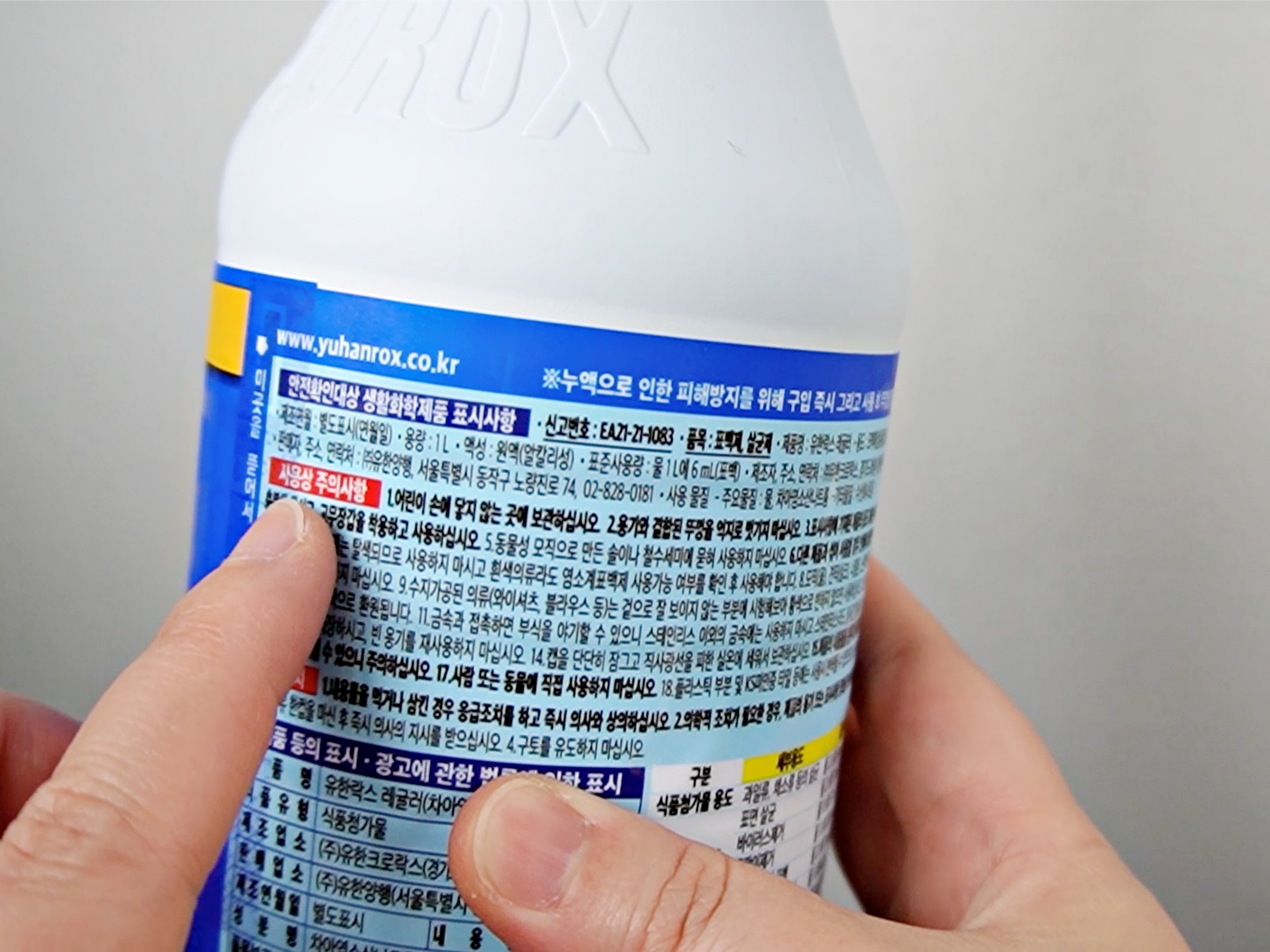 락스를 사용할 경우 반드시 찬물로 해야 돼요!