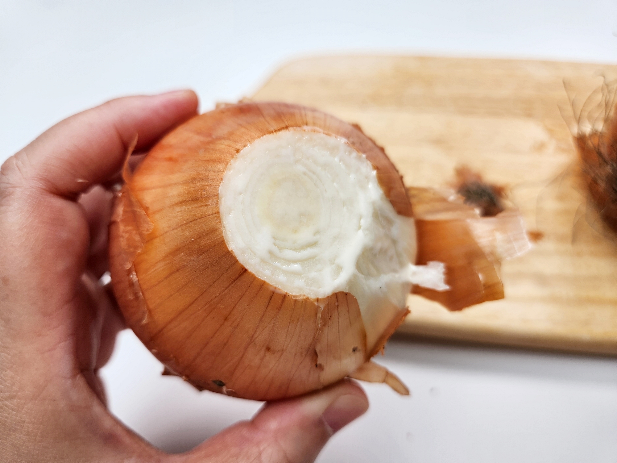 하나 더, 양파를 껍질째 물에 5분 정도 담가두는 것도 좋아요.