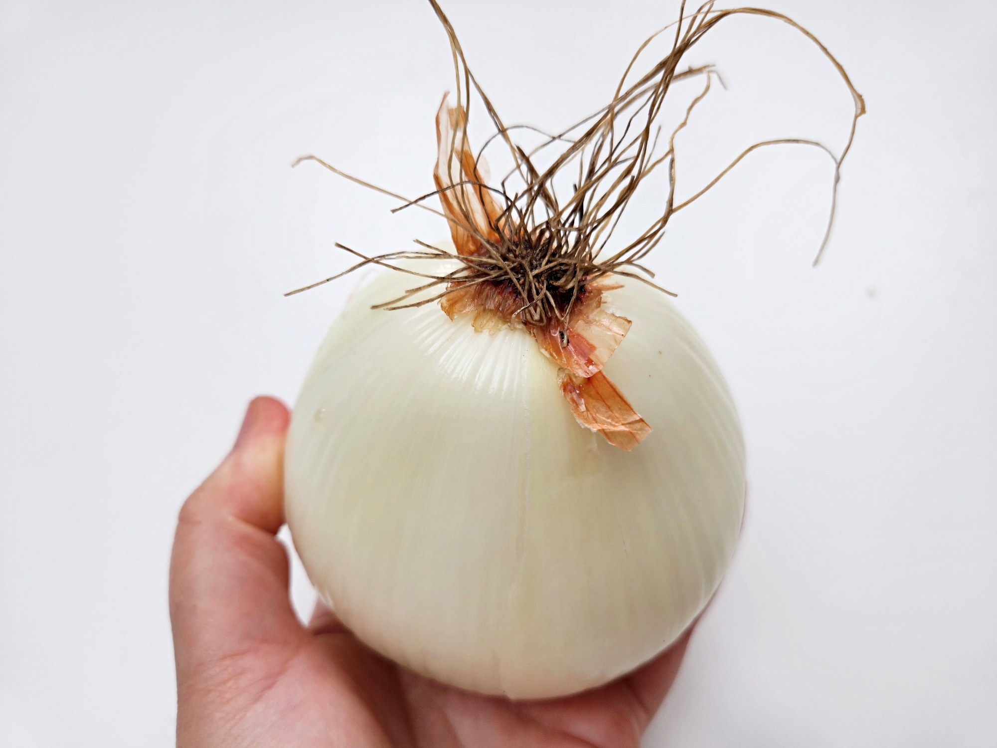 껍질을 먼저 제거하고 마지막에 뿌리를 자르는 순서가 포인트!