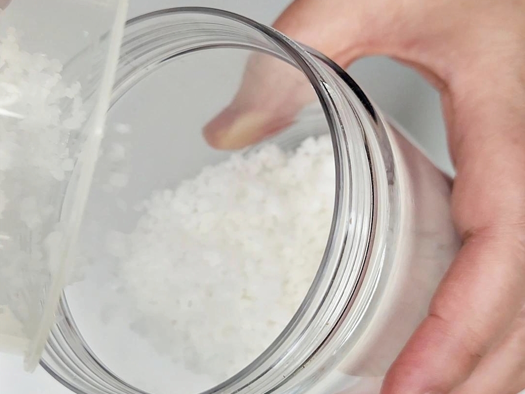 소금과 섬유유연제를 잘 섞어준 뒤 뚜껑을 닫으면 준비 완료!