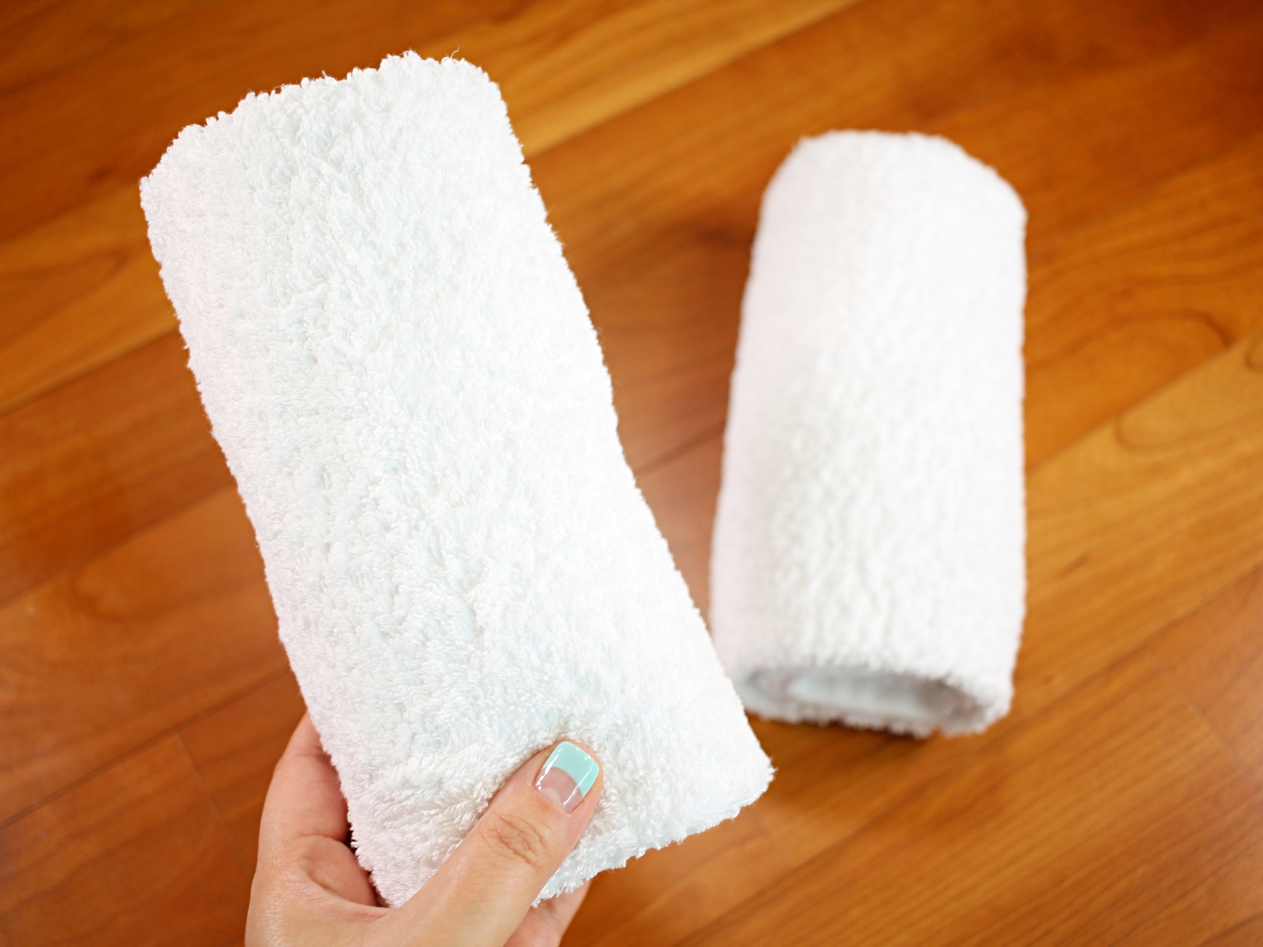 수건 사이사이 과탄산소다가 골고루 작용할 수 있도록
