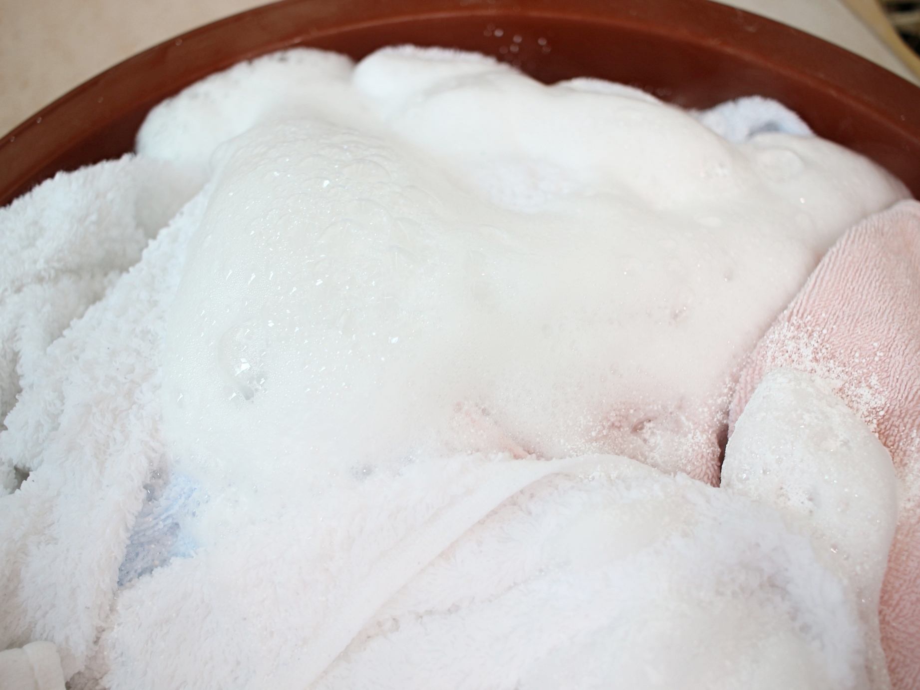 수건 사이사이 과탄산소다가 골고루 작용할 수 있도록