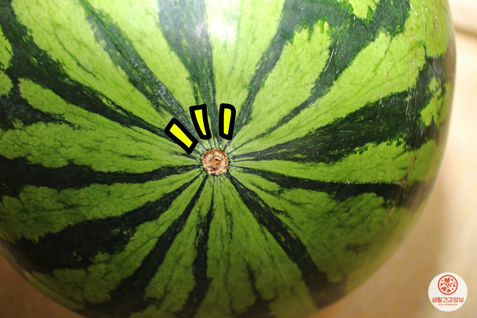 또, 수박꼭지로 싱싱함을 가리는데요.