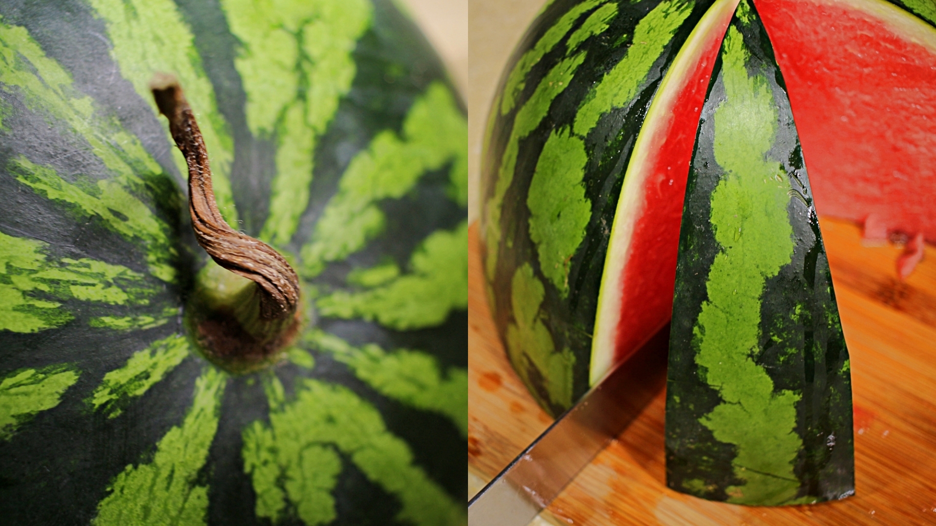 수박을 맨처음 반으로 자를 때