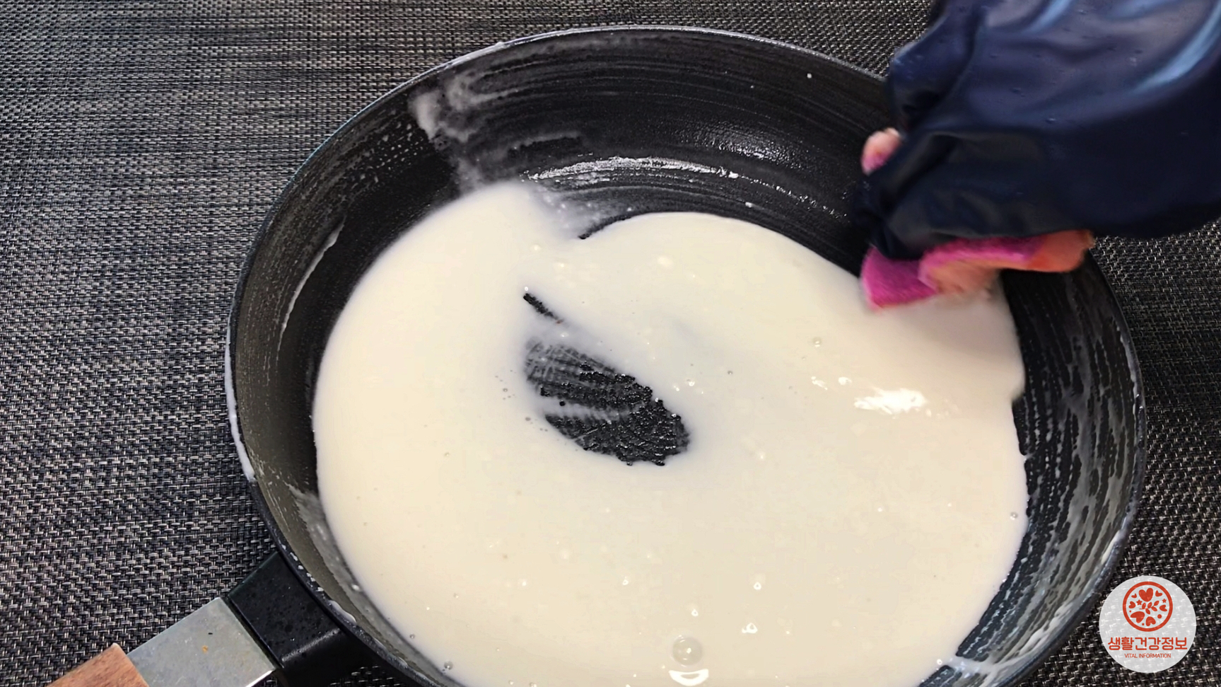 천연세제를 발라서 충분히 불리고 난 뒤 닦아주세요.
