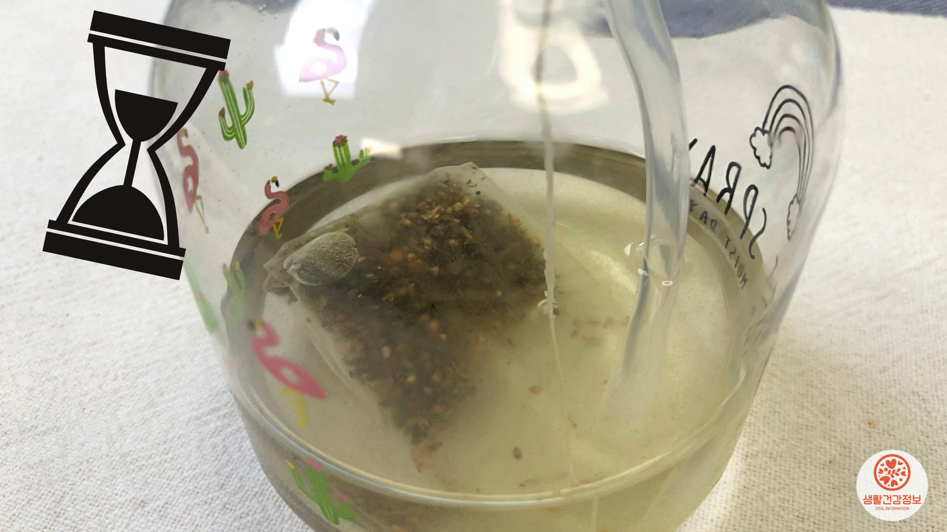 녹차가 진하게 우러나서 색이 진해졌네요.