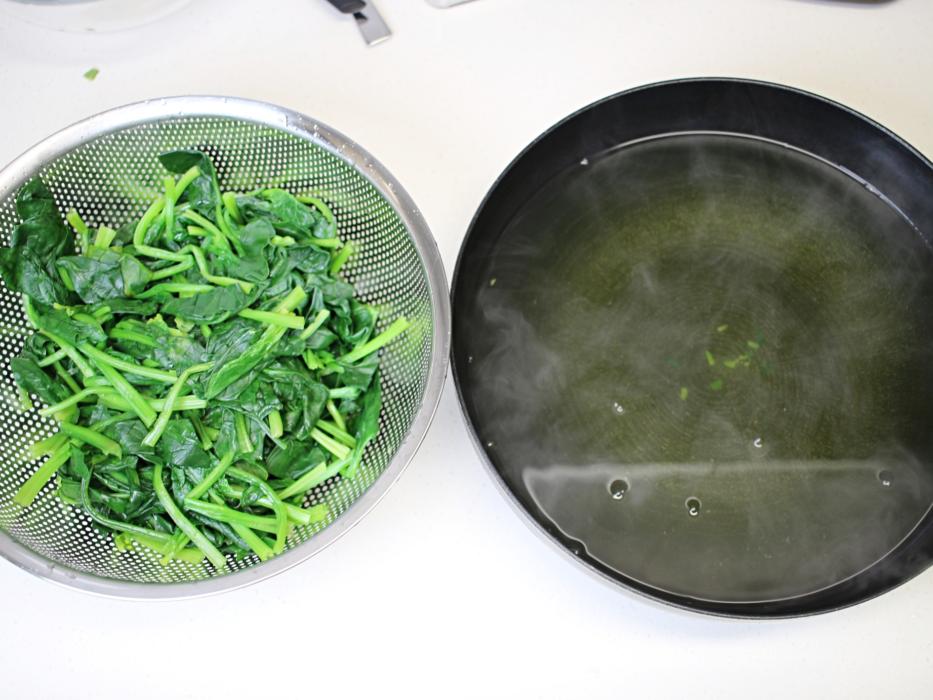 시금치 데친 물이 아직 따뜻할 때
