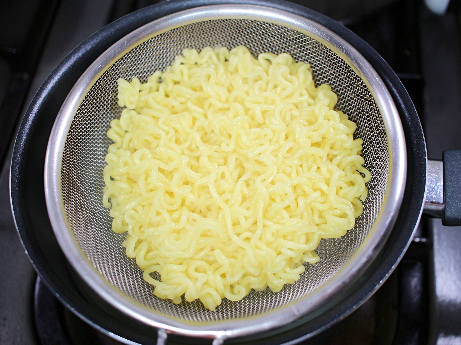 살짝 덜 익었을 때 건져내서 찬물로 헹궈주세요.