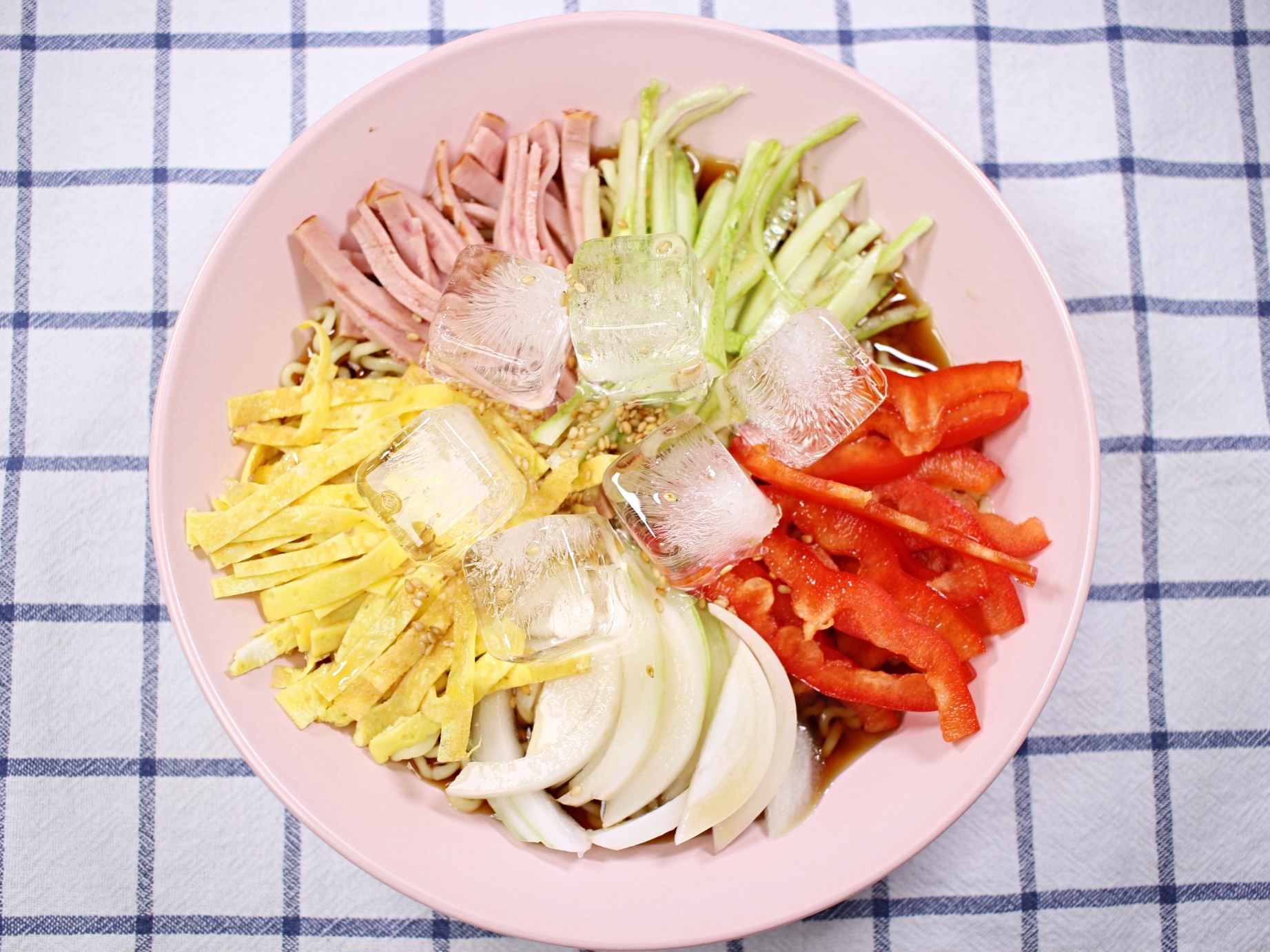 냉라면이 완성돼요.